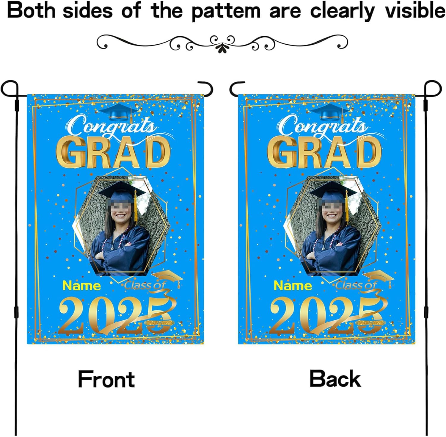UUBAO Custom Graduation Garden Flag with Photo Class of 2025 Congrats Grad Double Sided Yard Flag Decorative Gifts (Sky Blue)