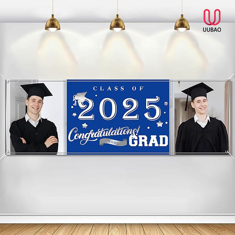 UUBAO Custom Graduation Party Decorations Personalization Banner Class of 2025 Backdrop (Navy Blue)