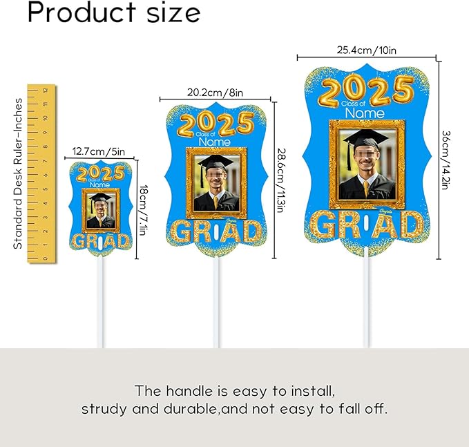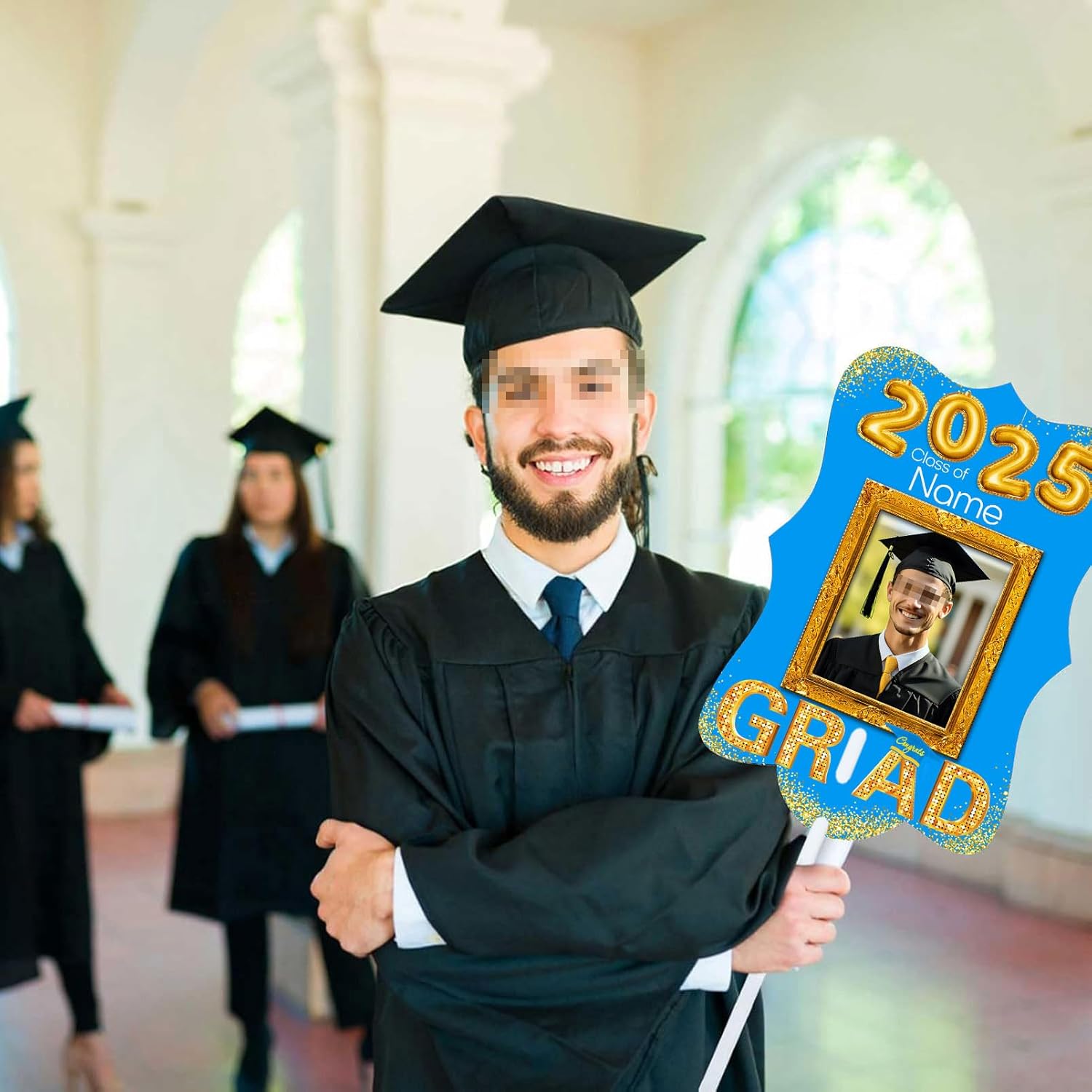 UUBAO Personalized Graduation Double Sided Face Fan Class of 2025 Customized Graduation Head Face Cutout with Handle Fun Photo Prop Supplies(Sky Blue)