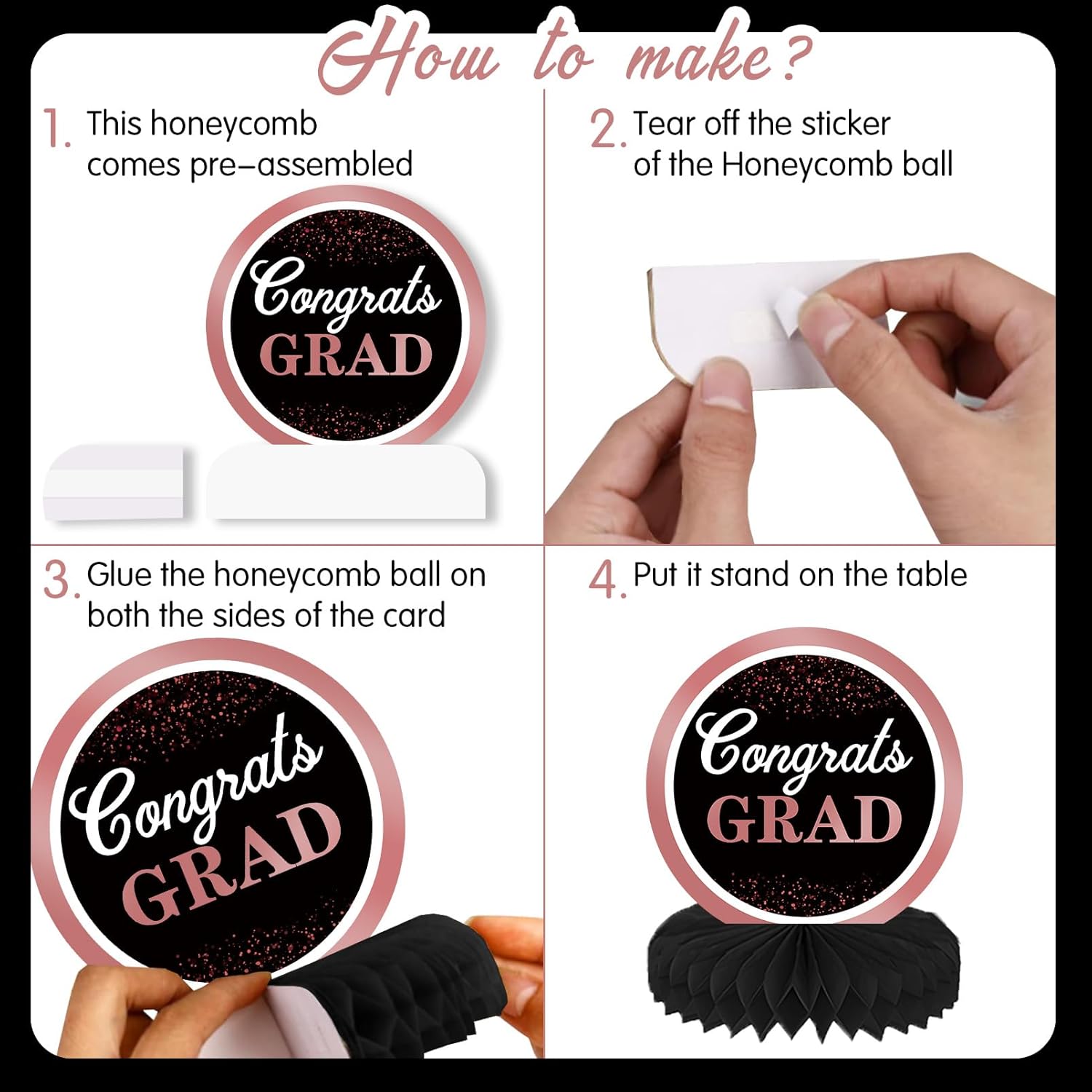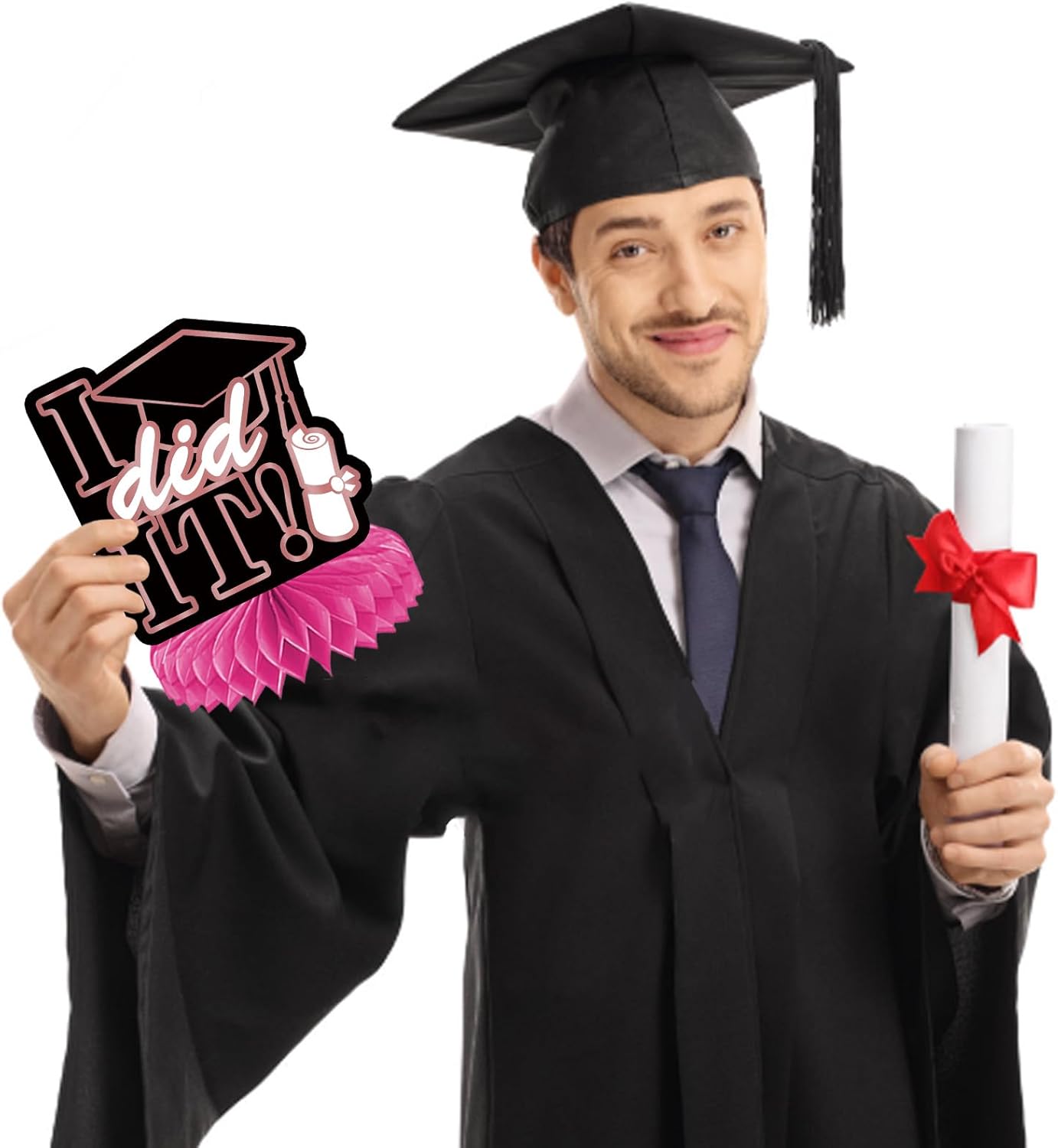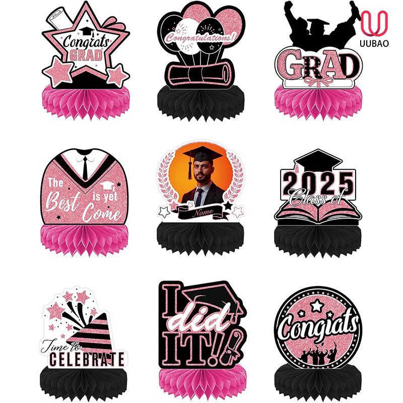 UUBAO 9 PCS Custom Graduation Party Honeycomb Centerpieces Class of 2025 Congrats Grad Decorations Congratulate Graduation Table Toppers for Graduation Party Favor Supplies (Pink)