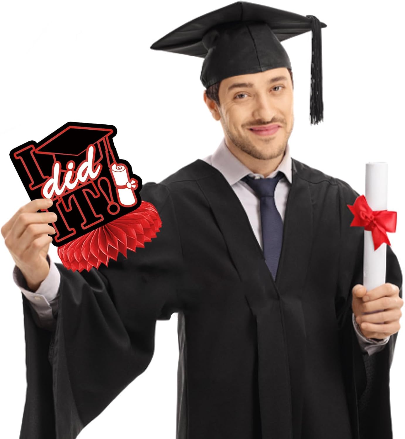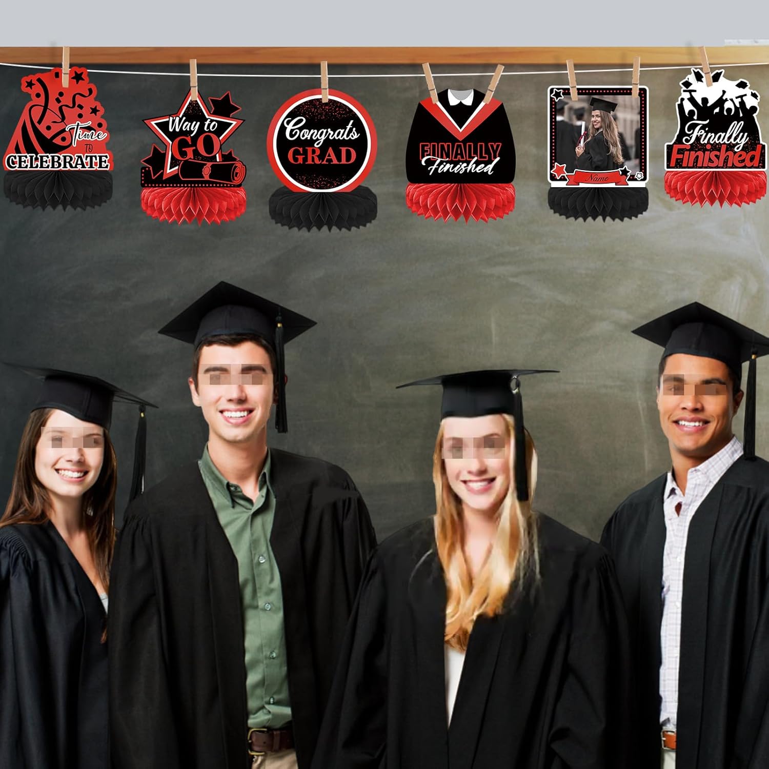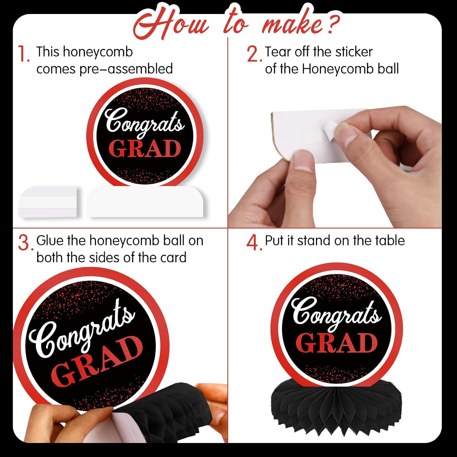 UUBAO 9 PCS Custom Graduation Party Honeycomb Centerpieces Class of 2025 Congrats Grad Decorations Congratulate Graduation Table Toppers for Graduation Party Favor Supplies (Red)