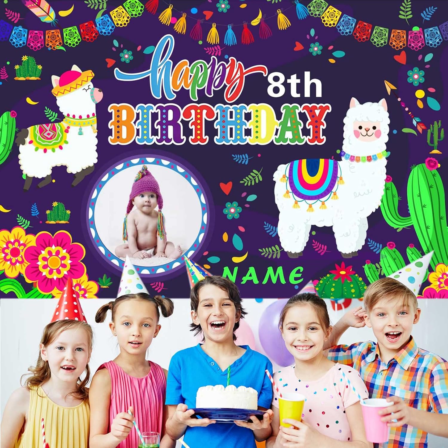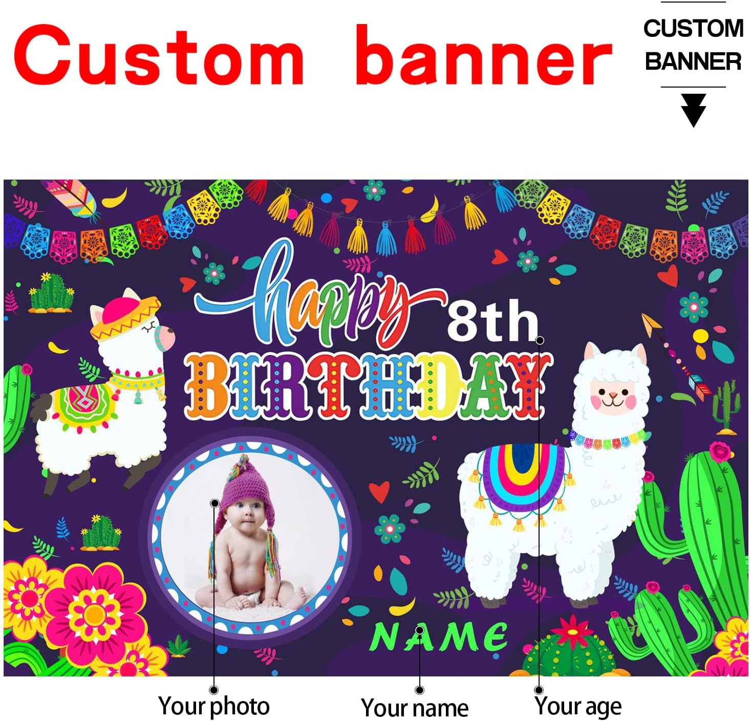UUBAO Custom Llama Cactus Happy Birthday Party Decorations Supplies Personalized Backdrop Banner