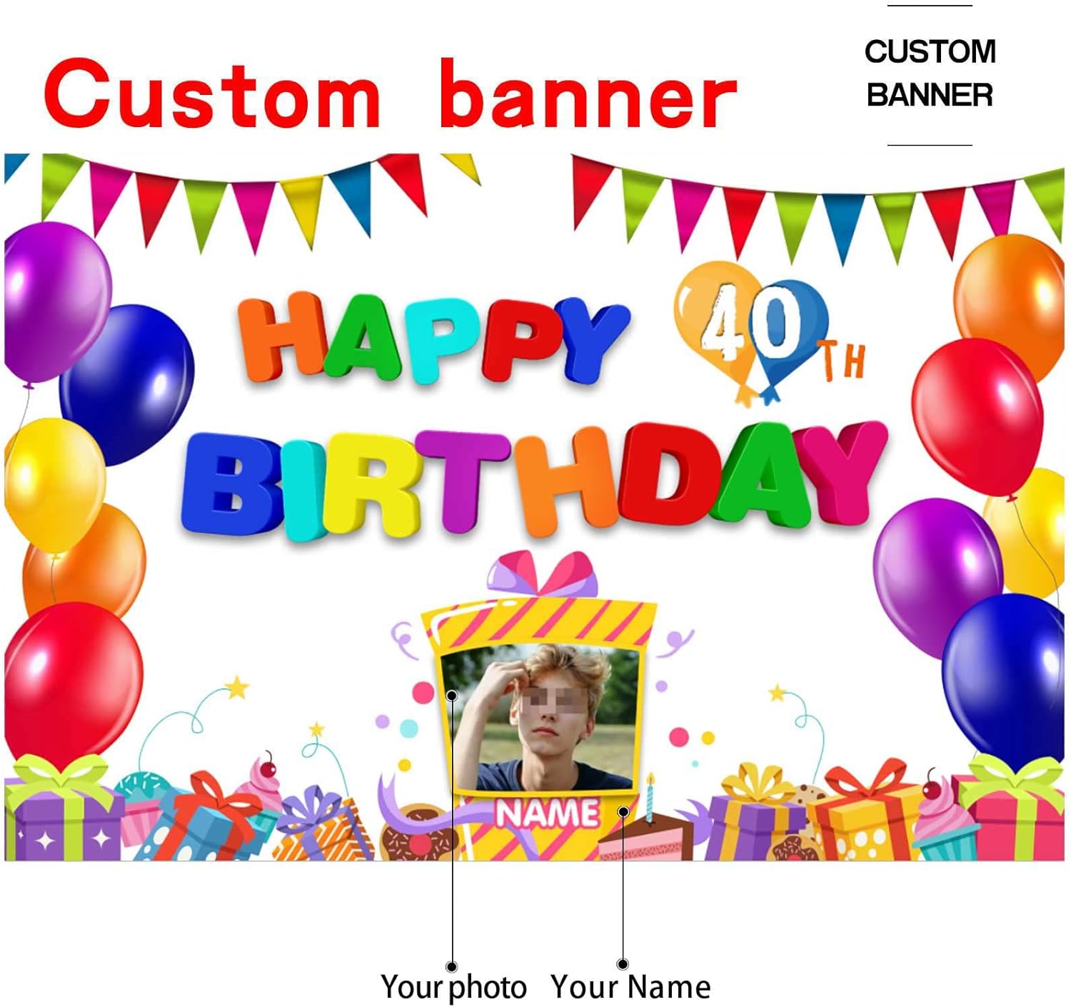 - Custom Decorations Banner:This is a Happy Birthday banner,That supports customization, You can customize name/photo/text on your banner to add atmosphere to your Birthday party.