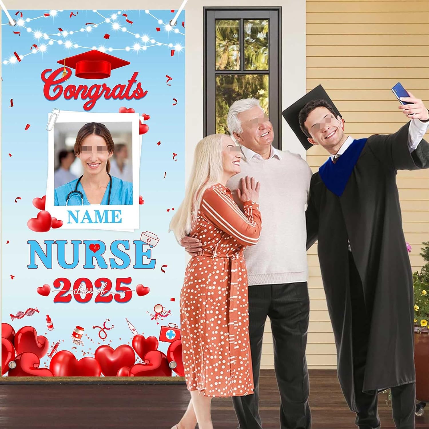 UUBAO Custom Nurse/Medical students Graduation Party Decorations Class of 2025 Front Door Porch Sign Backdrop Banner