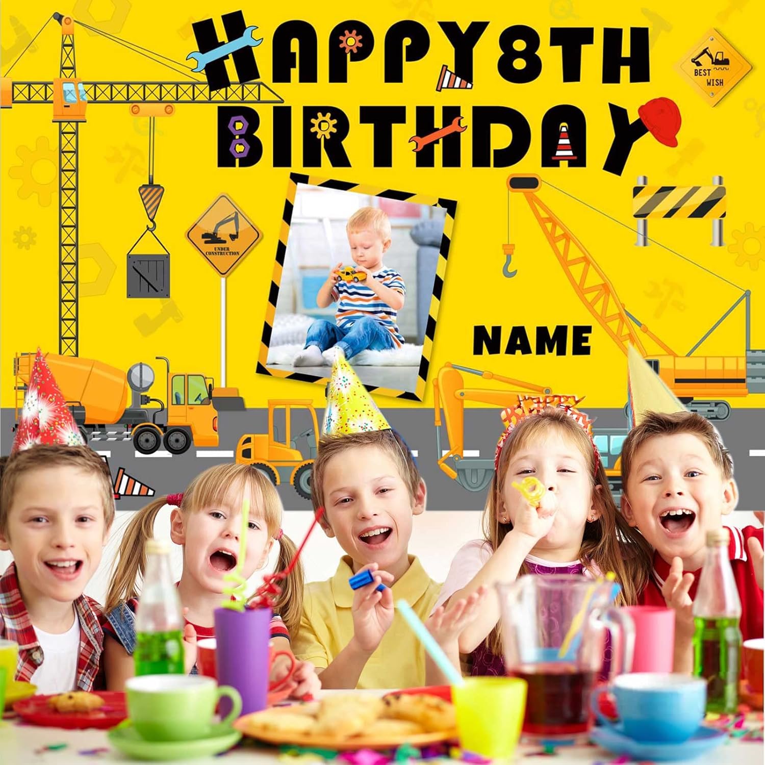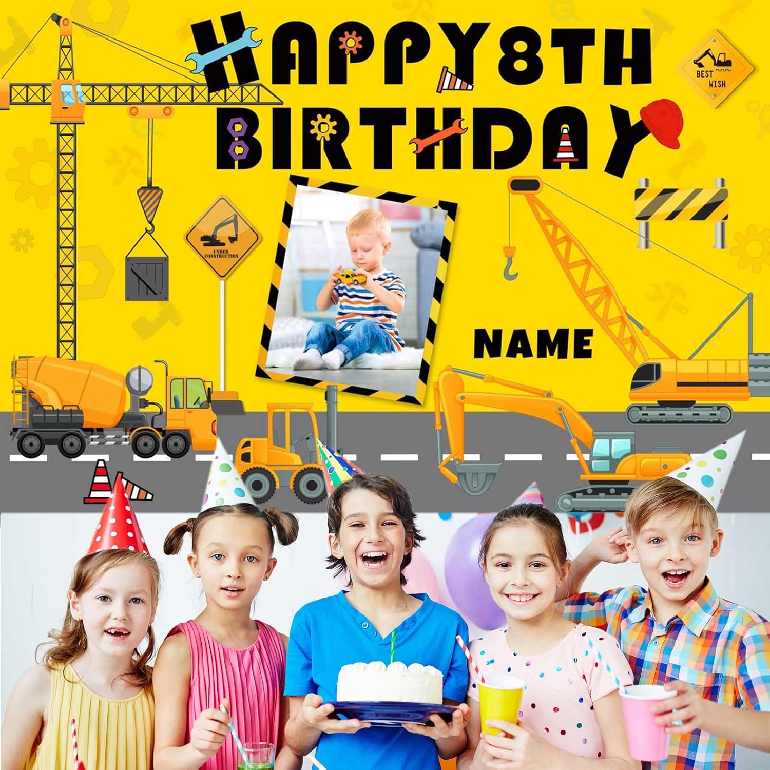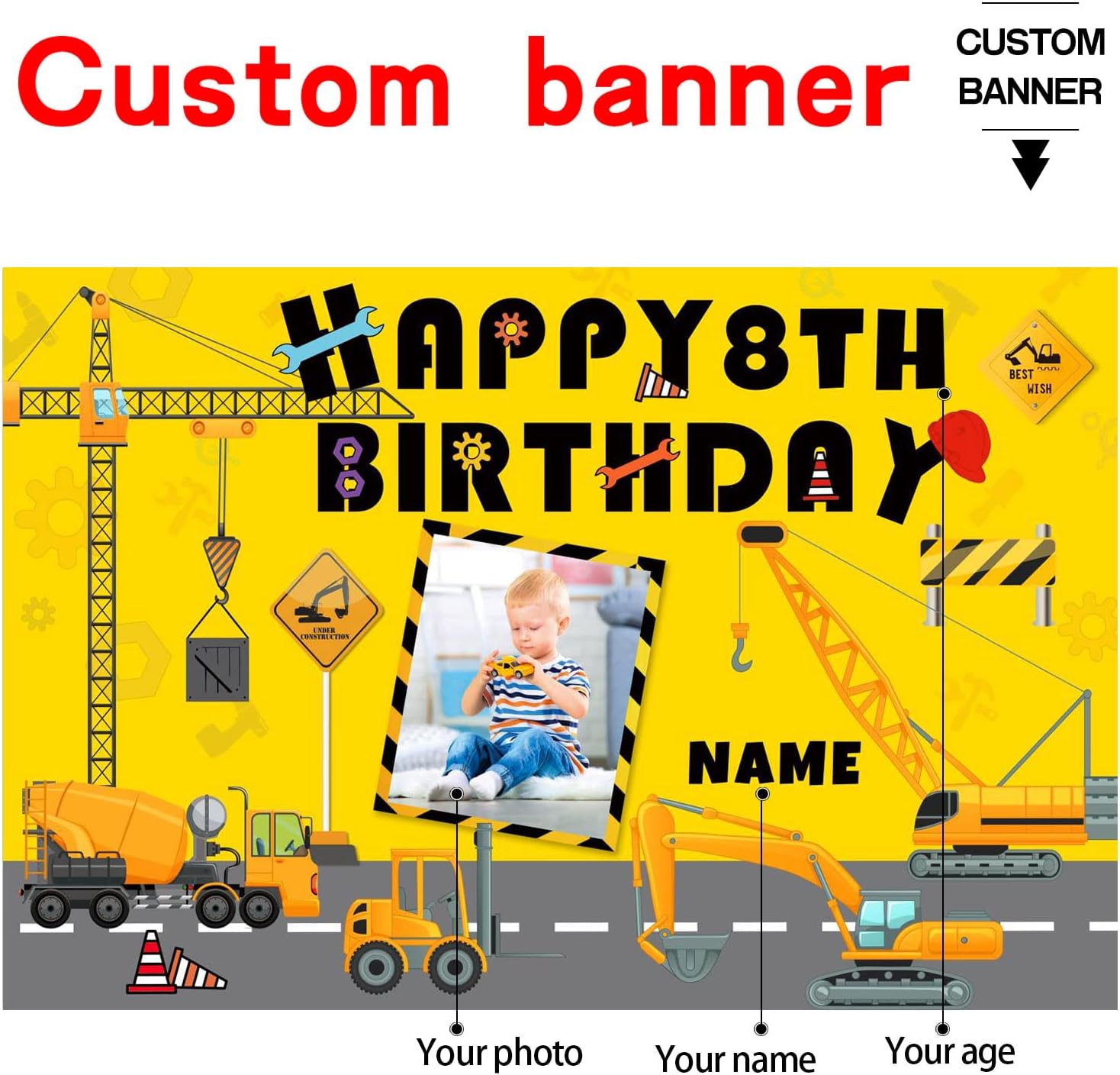 UUBAO Custom Construction Happy Birthday Party Decorations Supplies Personalized Excavator Crane Dump Truck Digger Backdrop Banner