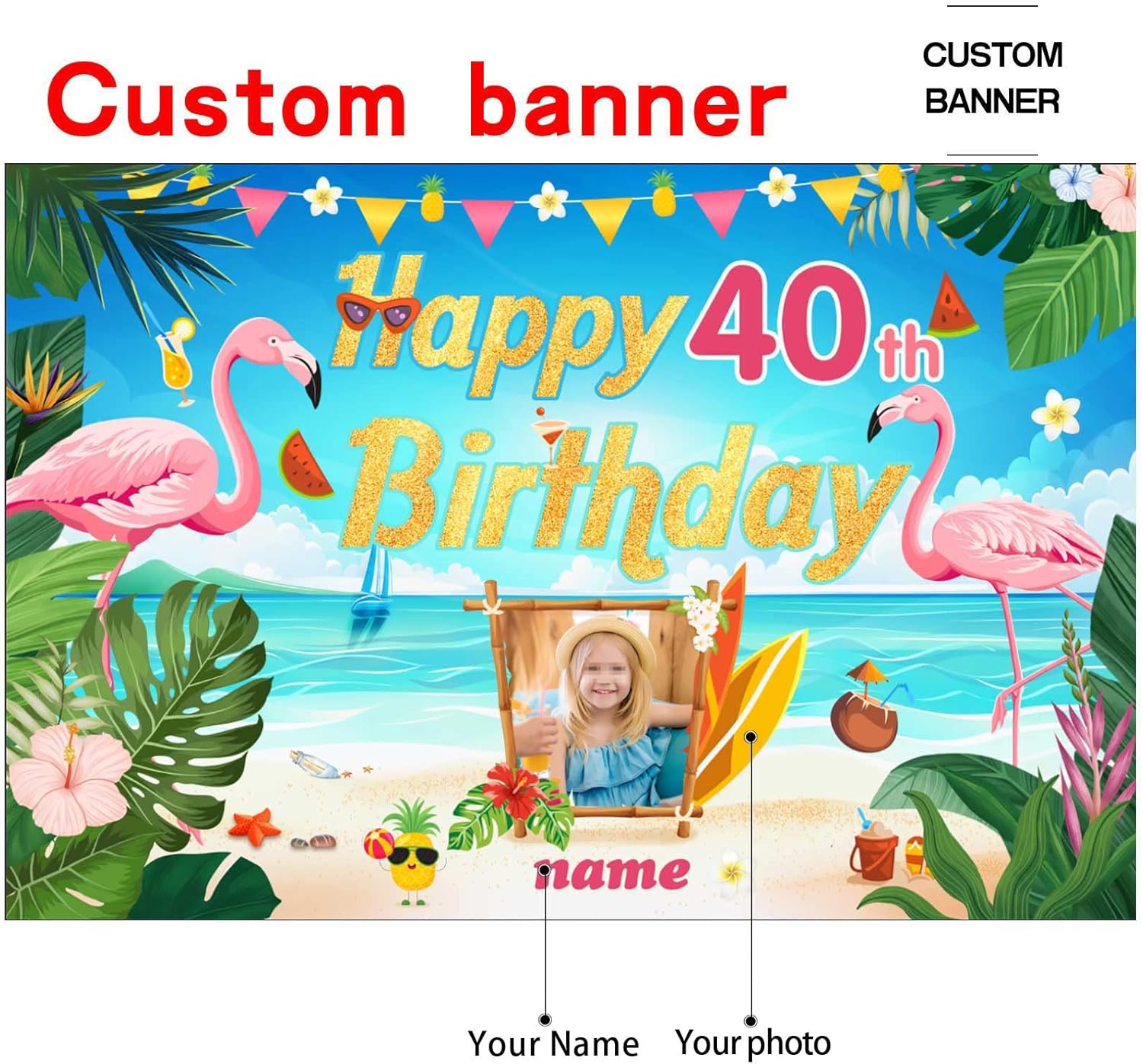 - Custom Decorations Banner:This is a Happy Birthday banner,That supports customization, You can customize name/photo/text on your banner to add atmosphere to your Birthday party.