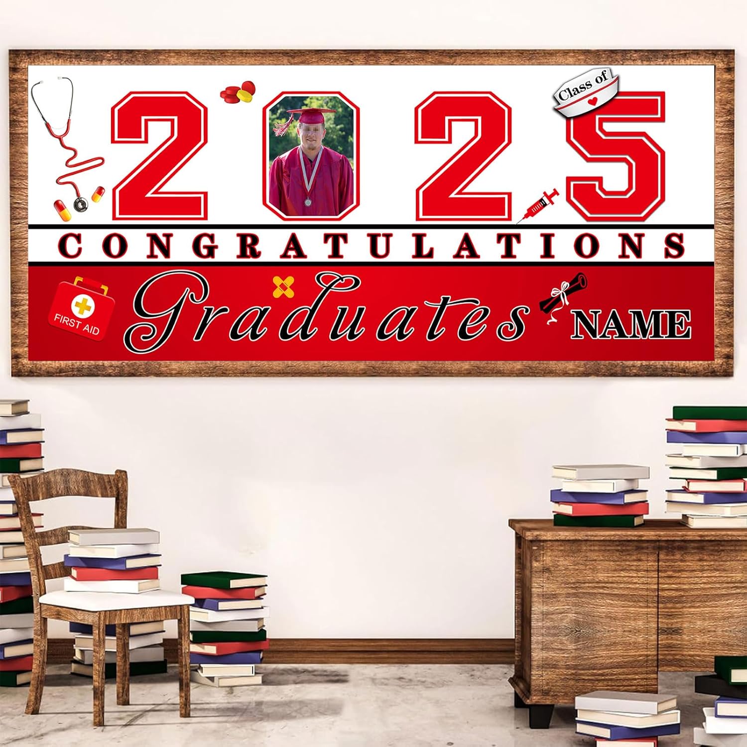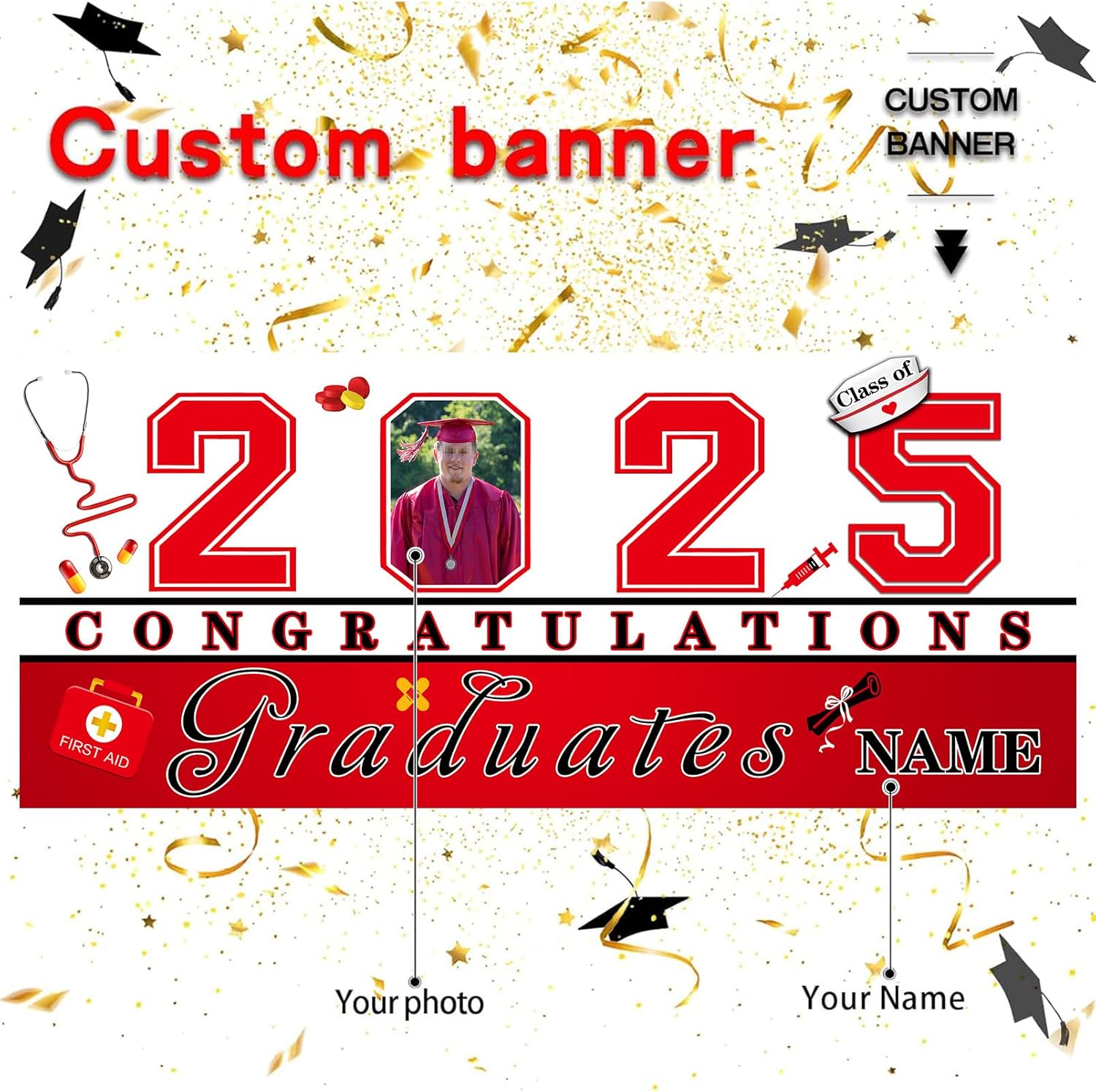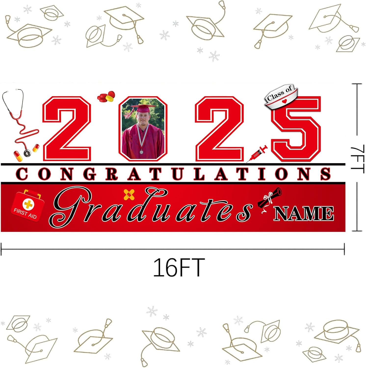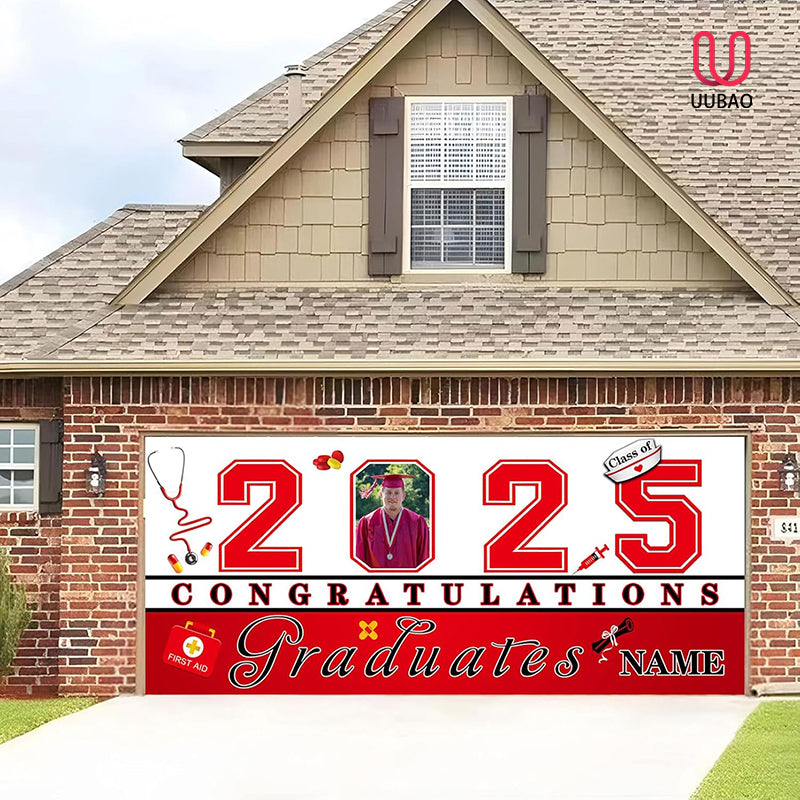 - 【 Large Customized Graduation Banner 】 It is a 16 x 7 ft 2025 graduation garage door cover with your customized photos and copy, making it perfect for hanging on your garage door, wall, or any other space in your home or school.【 High quality Fabric 】The graduation custom banner is made of durable polyester material, with high-definition printed images. Seamless, durable, lightweight, and non fading. The stitching is firm and not easy to tear; Lightweight, easy to carry and store; Suitable for indoor and outdoor use, making your graduation party special.【Easy Installation】This oversized door frame has 10 holes and a 600cm rope, making it easy to hang the graduation party door cover on your garage door, wall, or any other space in your home or school.【Wide application】This versatile graduation party banner can be used as a photo background or decoration to hang in any part of your home or school. Use it as a photo background for your graduation party, or hang it in school to add unforgettable memories to your graduation party or decoration【Service】We provide sincere service and products. Any problem or other special customization requirements, please contact us from message,we will give you solution within 24 hours.