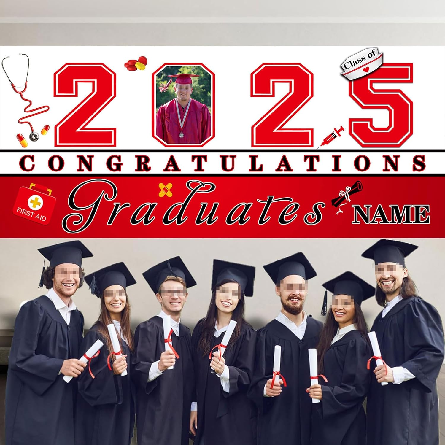 UUBAO Custom Nurse/Medical Students Graduation Garage Door Banner Cover Personalized Class of 2025 Congrats Grad Party Backdrop