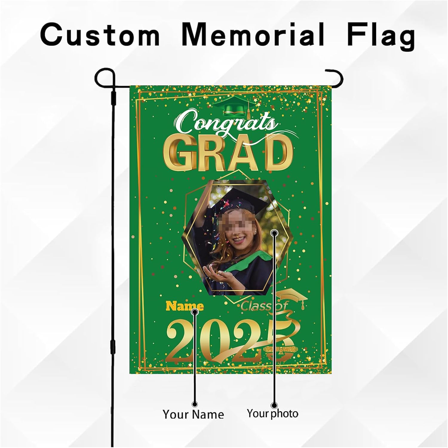 UUBAO Custom Graduation Garden Flag with Photo Class of 2025 Congrats Grad Double Sided Yard Flag Decorative Gifts (Dark Green)