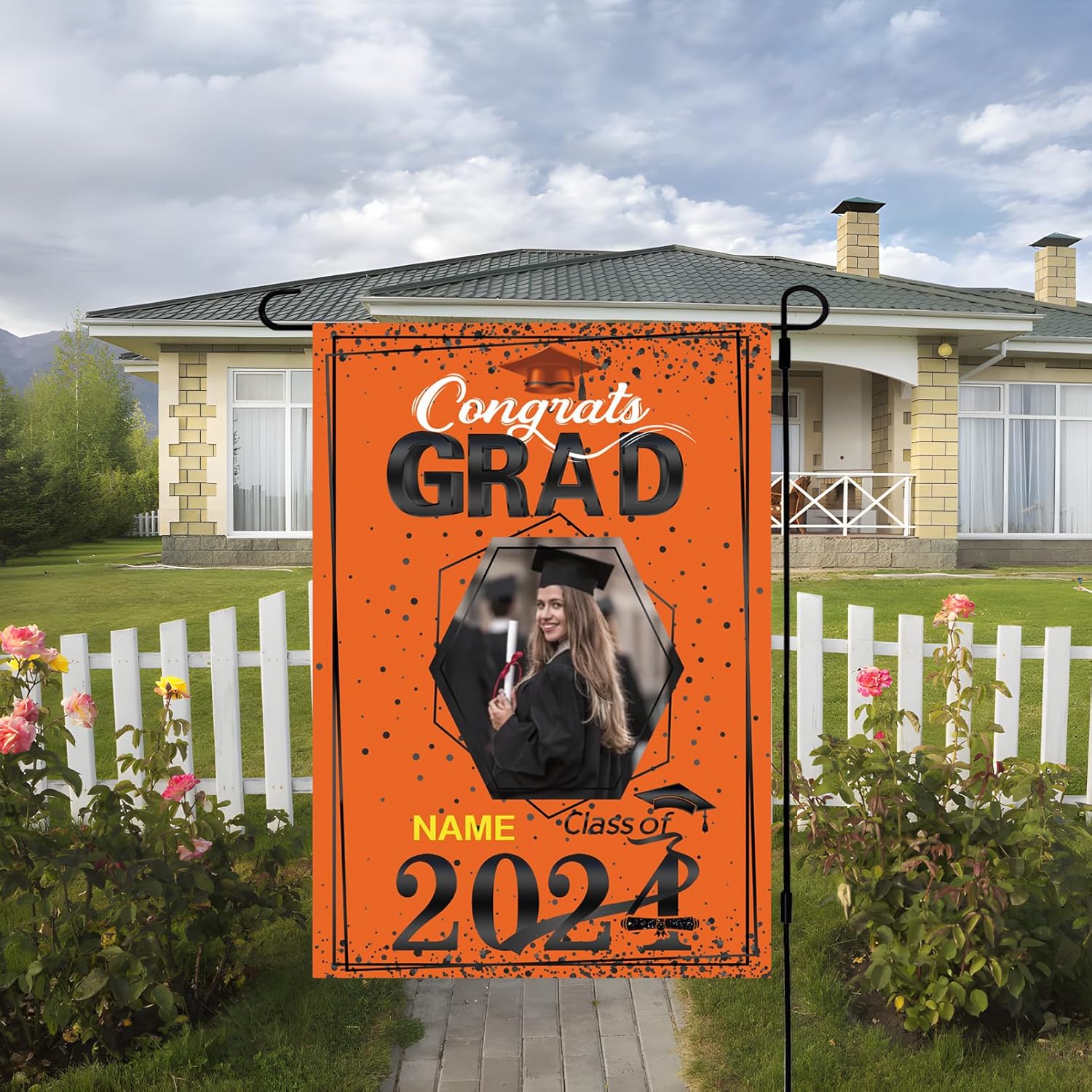 UUBAO Custom Graduation Garden Flag with Photo Class of 2025 Congrats Grad Double Sided Yard Flag Decorative Gifts (Orange)