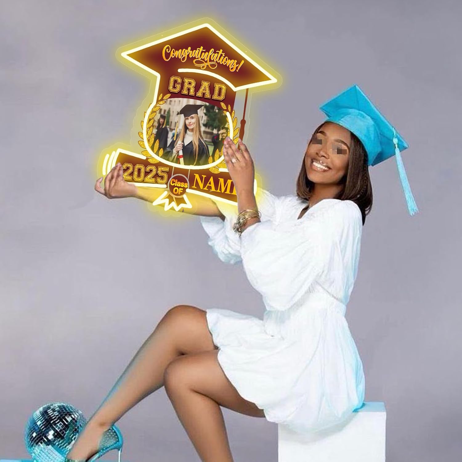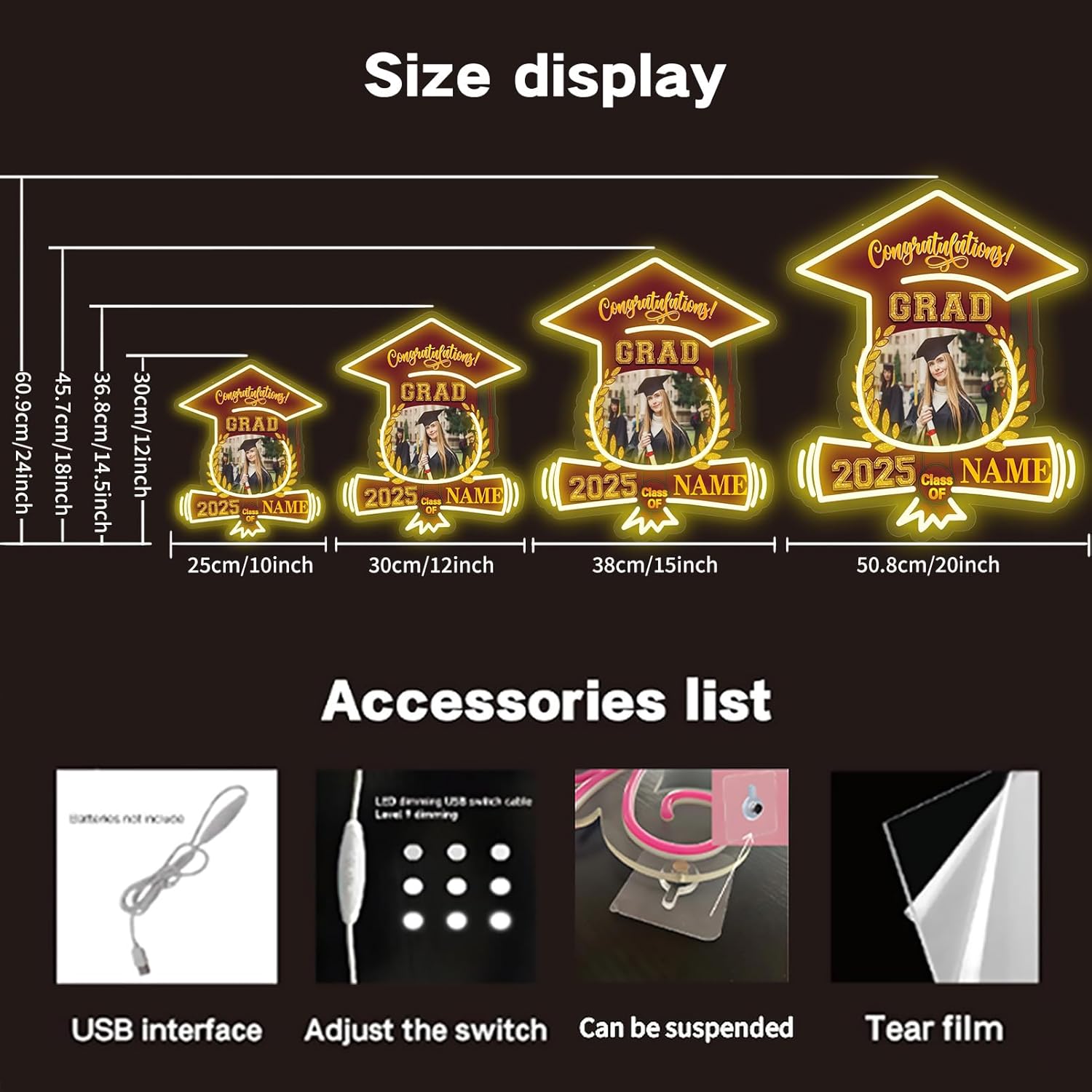 - 【Customize】Celebrate your graduation with our Custom 2025 Graduation neon sign,the unique style brighten up your space.featuring customizable size, photo and name for a truly personal touch.Just click "customize now" on top right.