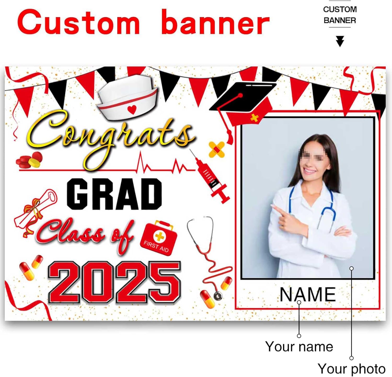 UUBAO Custom Nurse/Medical Students Graduation Party Decorations 2025 Personalization Congrats Grad Backdrop Banner