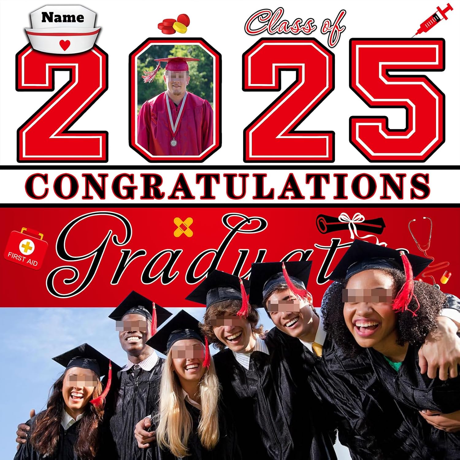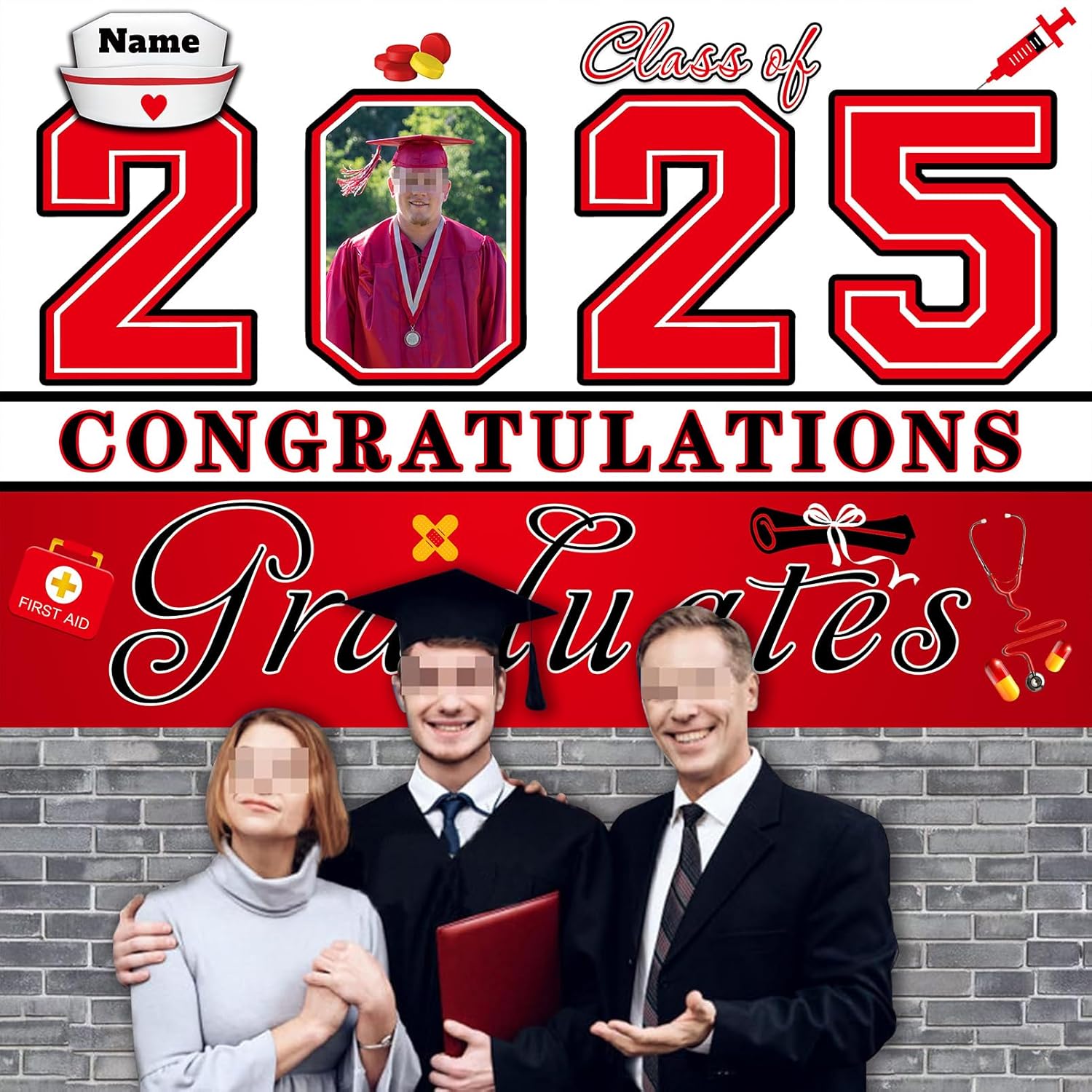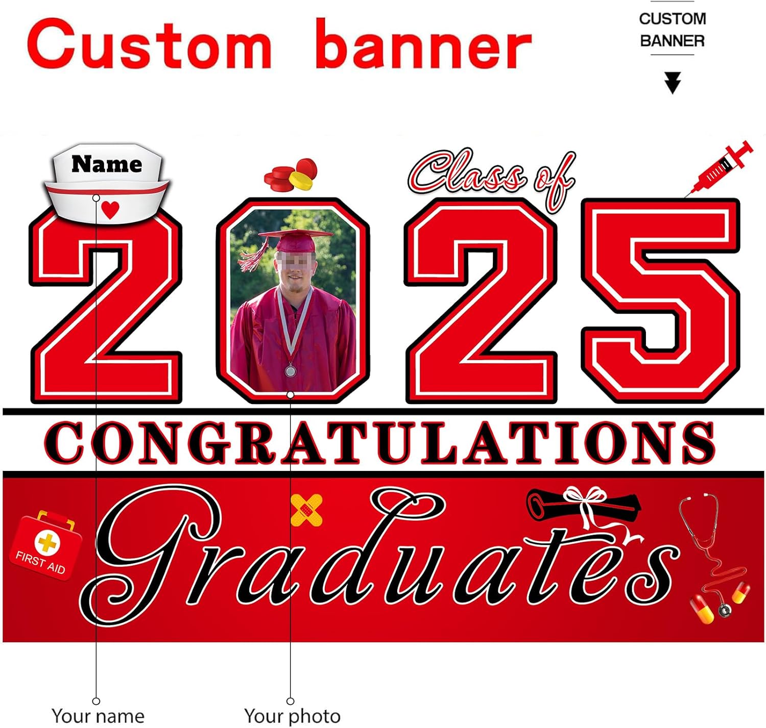 UUBAO Custom Nurse/Medical Students Graduation Party Decorations 2025 Personalization Congrats Grad Backdrop Banner