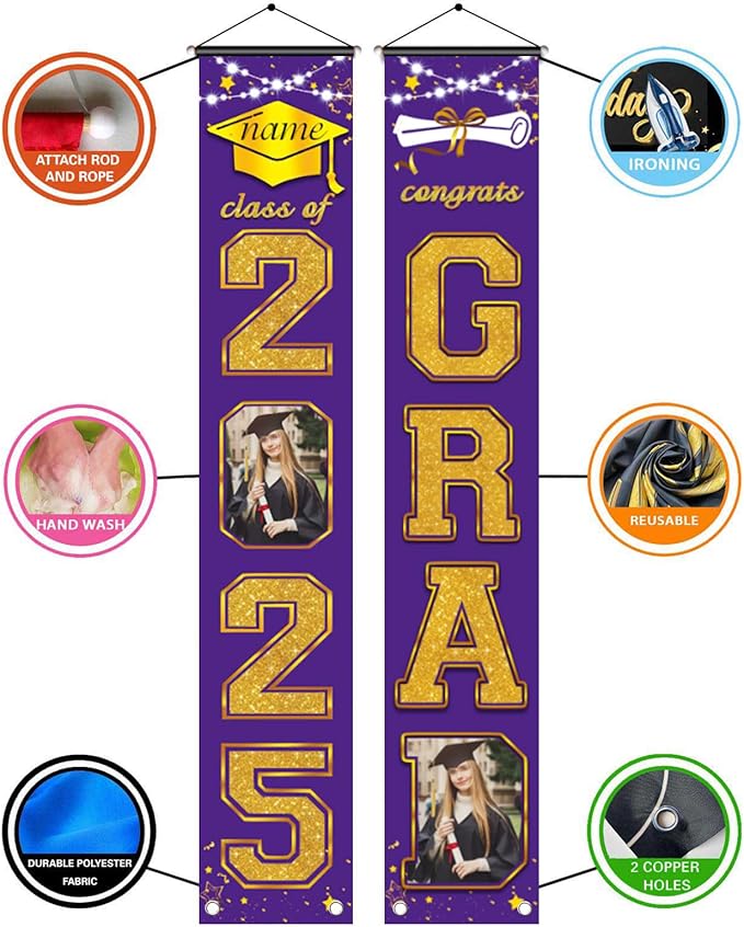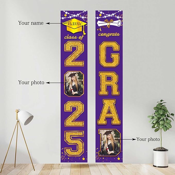 【Customize】Upload your favorite photos and preview the designs. Celebrate your graduation with our brand new 2025 Graduation door banner,add atmosphere to your graduation party.Featuring customizable size, photo and name for a truly personal touch.Just start from "customize now" on top button.