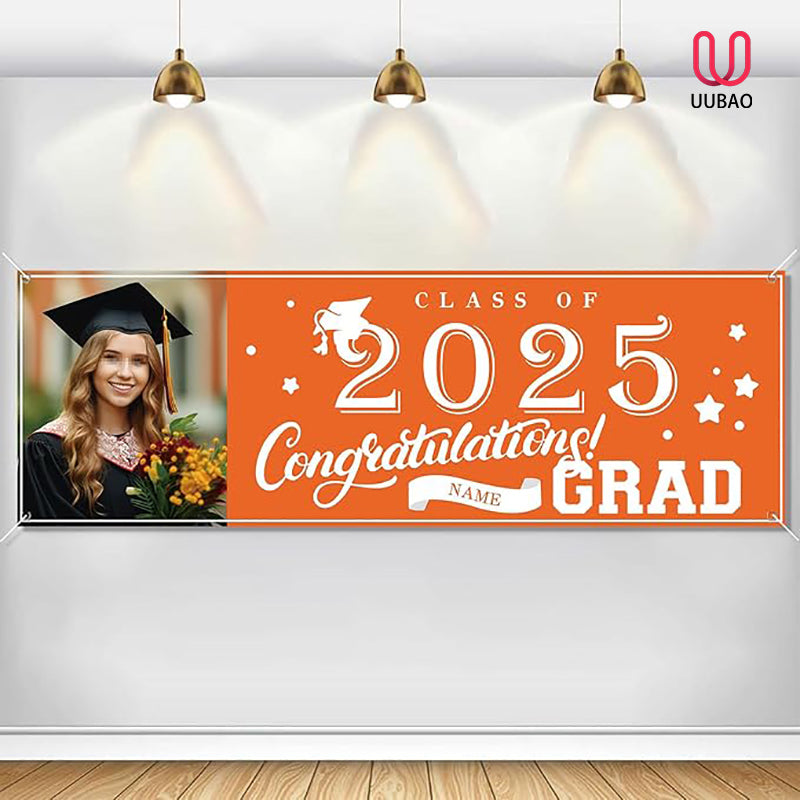 UUBAO Custom Graduation Party Decorations Personalization Banner Class of 2025 Backdrop (Orange)