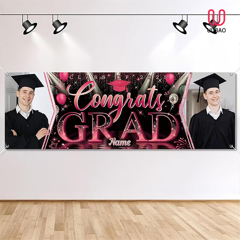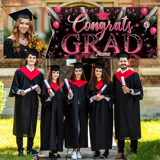 - 【Customize】Upload your favorite photos and preview the designs. Celebrate your graduation with our brand new 2025 Graduation door banner,add atmosphere to your graduation party.Featuring customizable size, photo and name for a truly personal touch.Just start from "customize now" on top button.【Material】Made of durable polyester fabric, lightweight, washable and tear-resistant, and can last for a long time use; It can be folded for convenient storage and carry.【Quick and easy to set up】70.8x23.6inches standard size,with pre-punched holes and a durable material, our graduation banners can be hung indoors or outdoors in minutes, ensuring hassle-free decoration.【Wide Application】The strong,clear pattern is very eye-catching.It’s great for hanging the Graduation banner in the outdoor or indoor.It also can be used as wallpaper, curtain, backdrop for photo studio. It will do bring the cheers to you, your friends and your family!【Service】We provide Risk Free 30-Day Money Back Guarantee.Please buy with confidence.Any problem or other special customization requirements, please contact us from message,we will give you solution within 24 hours.