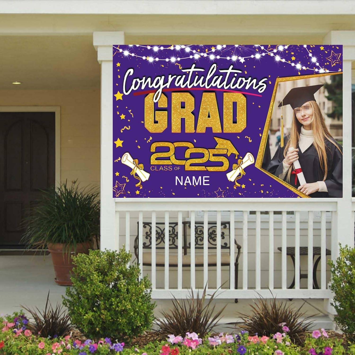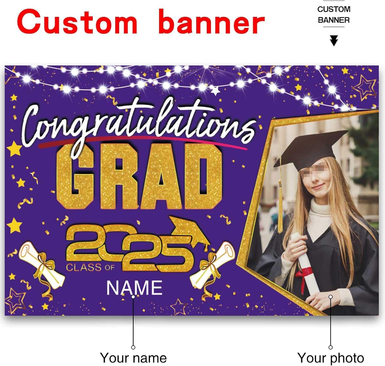 • 🎓Personalized customization: Celebrate the class of 2025 with a custom and personalized graduation banner, featuring a stunning purple and gold color scheme, Easily customizable with photos and names, making it a thoughtful and unique graduation gift for the special graduate.