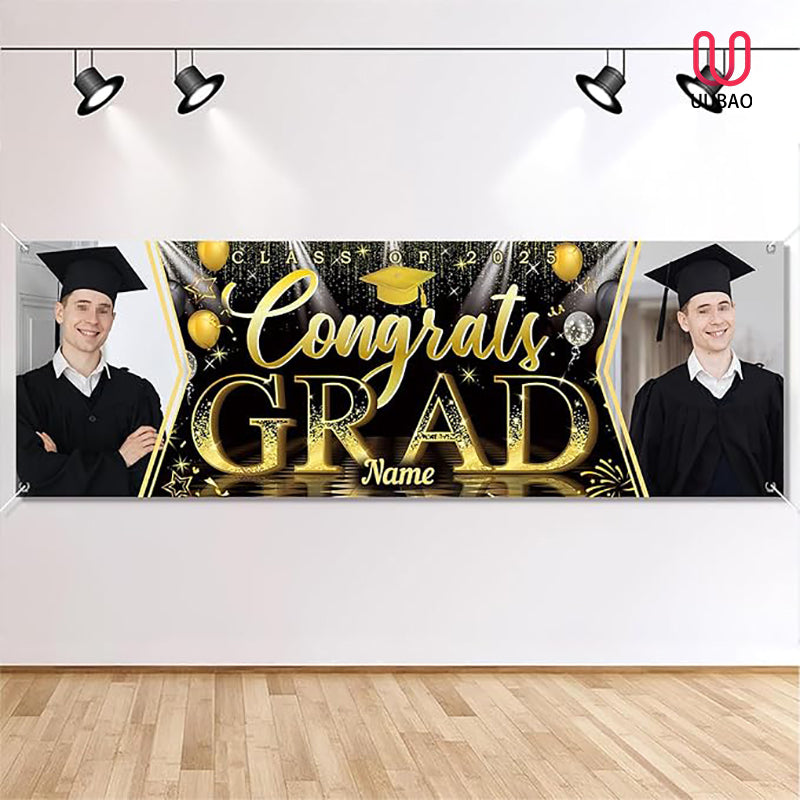 【Customize】Upload your favorite photos and preview the designs. Celebrate your graduation with our brand new 2025 Graduation door banner,add atmosphere to your graduation party.Featuring customizable size, photo and name for a truly personal touch.Just start from "customize now" on top button.