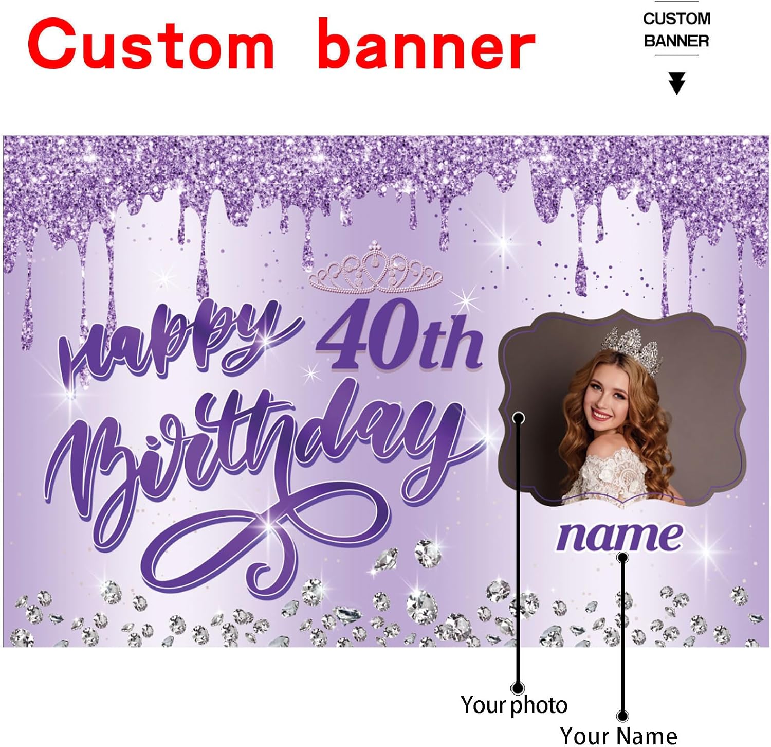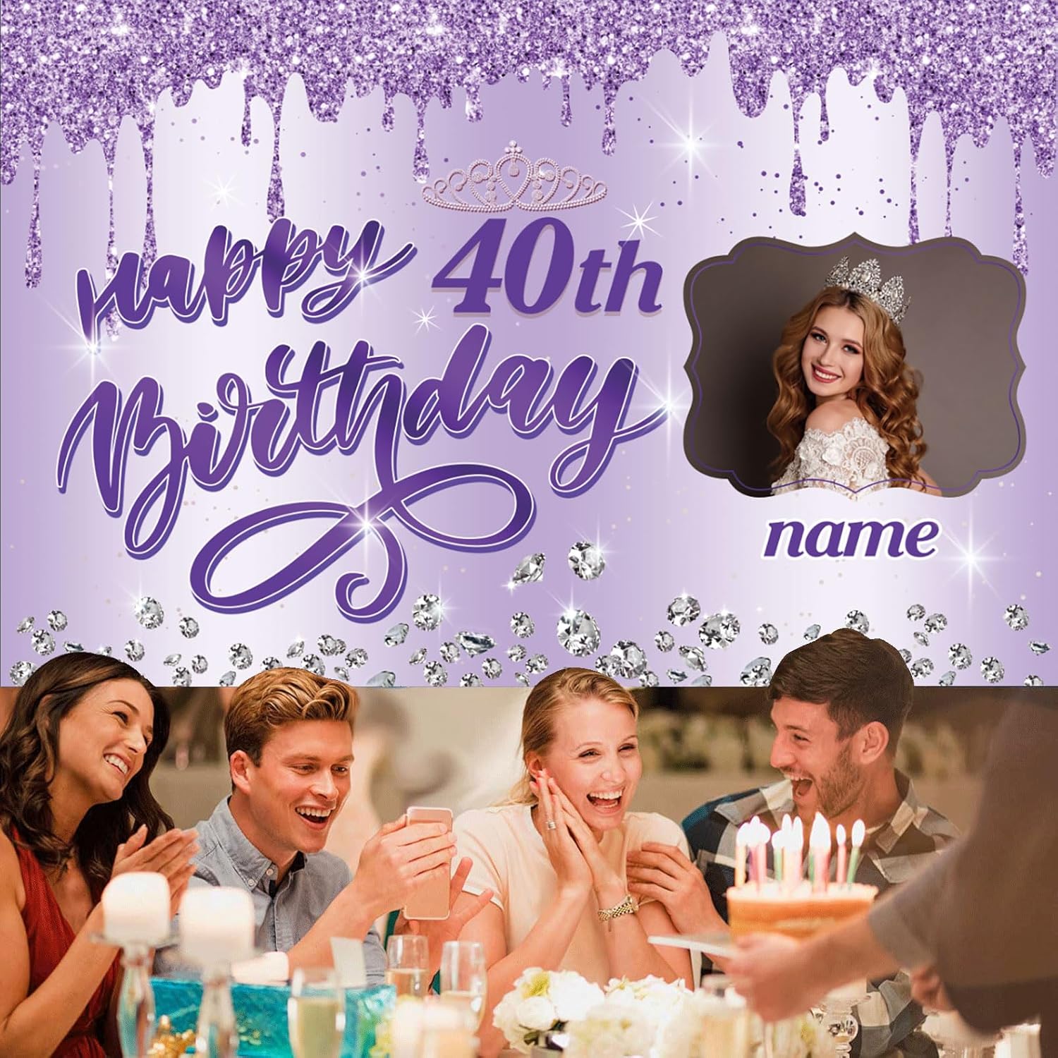 UUBAO Custom Happy Birthday Backdrop Personalization Glitter DiamondBanner for Girls Women(Purple)