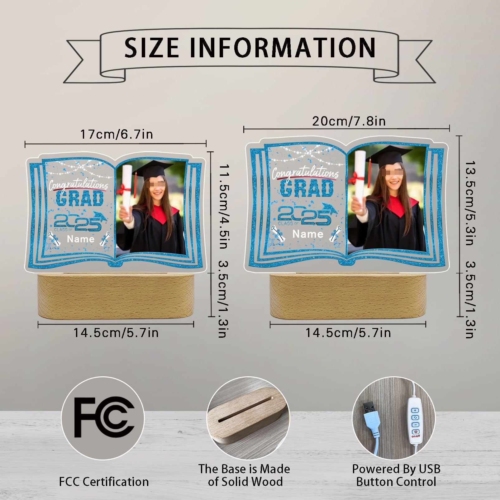 - 【Custom】Our night lights support customization, and you can customize photos, names,according to your own needs. Customize this unique graduation gift for the person you love, imagine their happy faces when they see this special graduation gift!