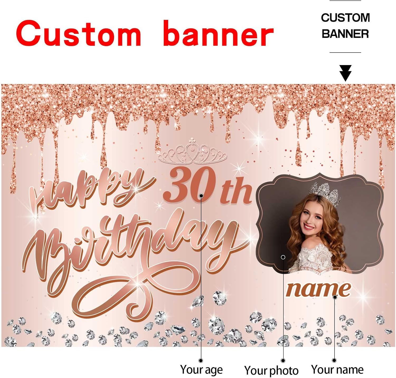UUBAO Custom Happy Birthday Backdrop Personalization Glitter Diamond Banner for Girls Women(Rose Gold)
