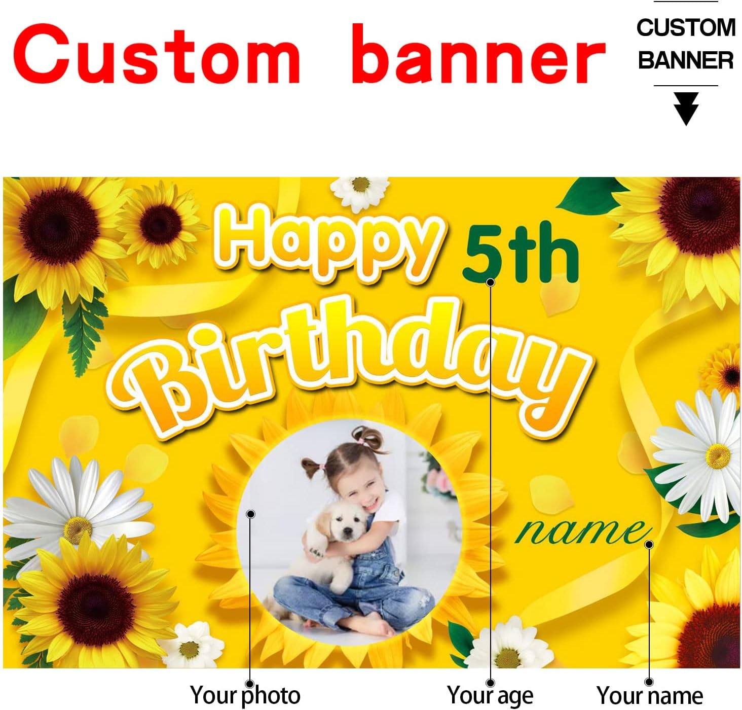UUBAO Custom Sunflower Happy Birthday Party Decorations Supplies Personalized Backdrop Banner