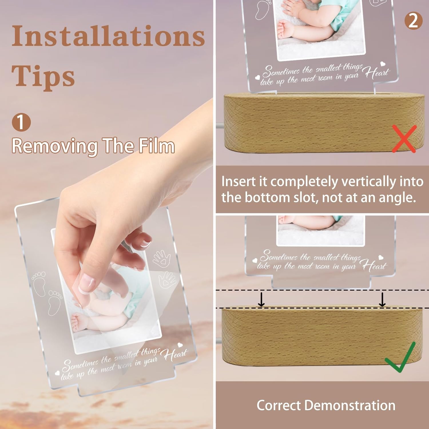 - 🎁【Gifts for First Time Mom】Cute and fine decoration design. During the night when you turn on the light, acrylic plaque enhances the colors and details of your photos, great decorations for bedroom. It's a warm gift for new mom new dad.