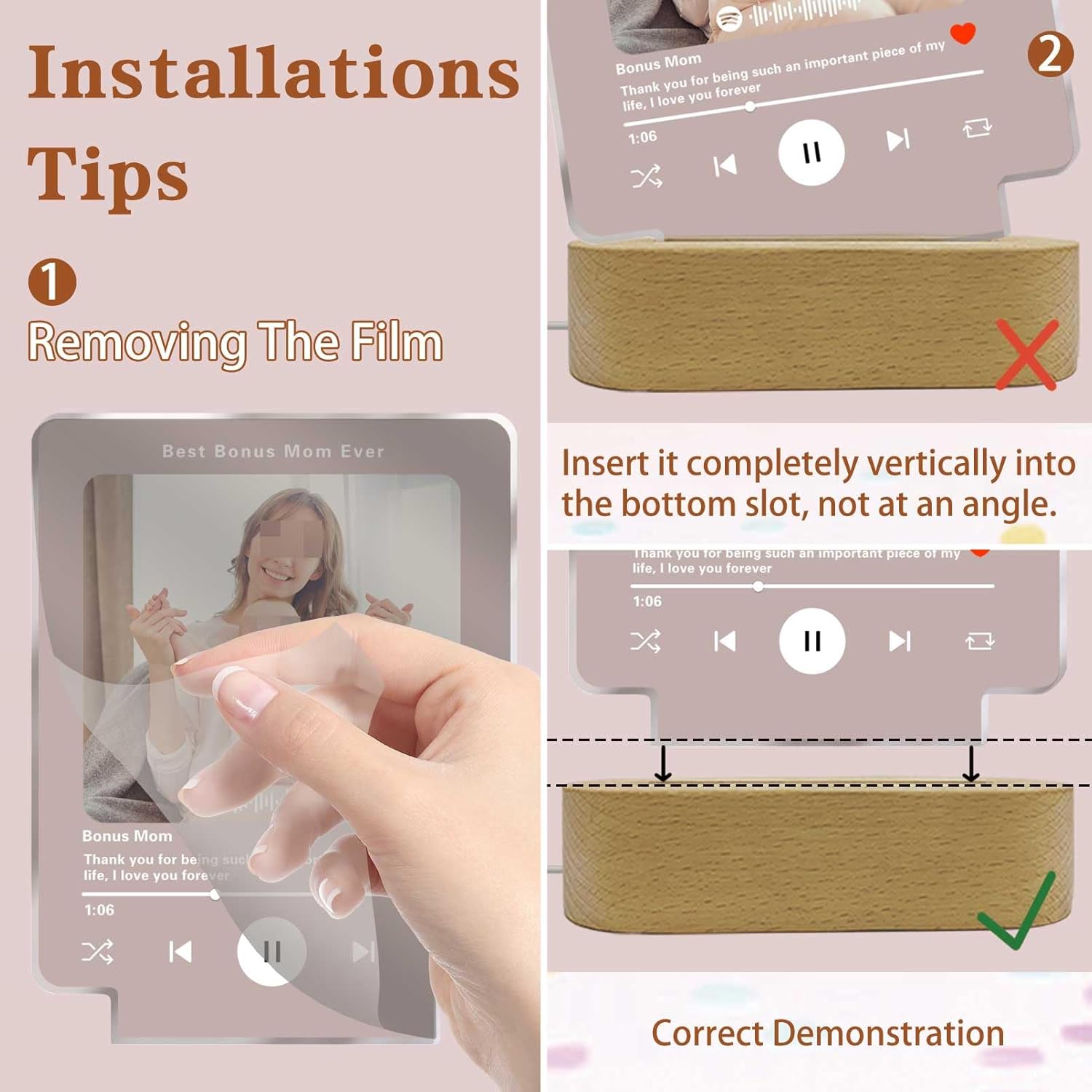 - 💖【High Quality】This customized night light is made of acrylic material + solid wooden base, pollution-free, unbreakable,color never fade,healthy and environmentally friendly. Simply wipe it down with a soft cloth to remove dust or fingerprints. There are 2 classic size acrylic plaque night light for choose(5.9x 7inches/7.8x9.4 inches).