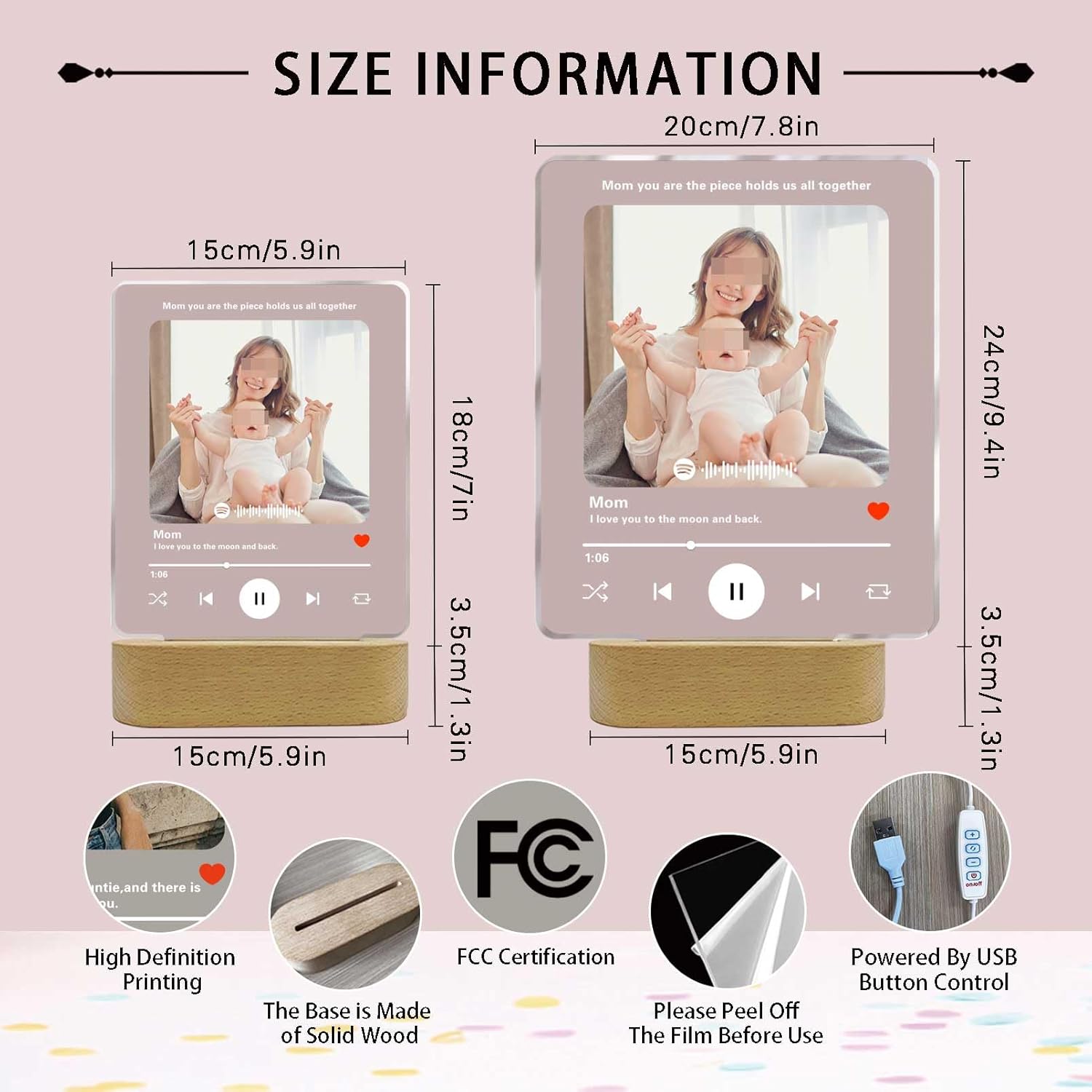 - 💖【High Quality】This customized night light is made of acrylic material + solid wooden base, pollution-free, unbreakable,color never fade,healthy and environmentally friendly. Simply wipe it down with a soft cloth to remove dust or fingerprints. There are 2 classic size acrylic plaque night light for choose(5.9x 7inches/7.8x9.4 inches).