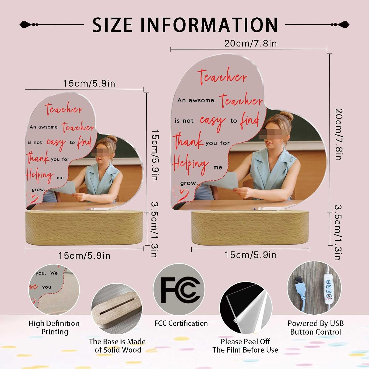 - 💖【High Quality】This customized night light is made of acrylic material + solid wooden base, pollution-free, unbreakable,color never fade,healthy and environmentally friendly. There are 2 classic size acrylic plaque night light for choose(5.9x5.9inches/7.8x7.8 inches).