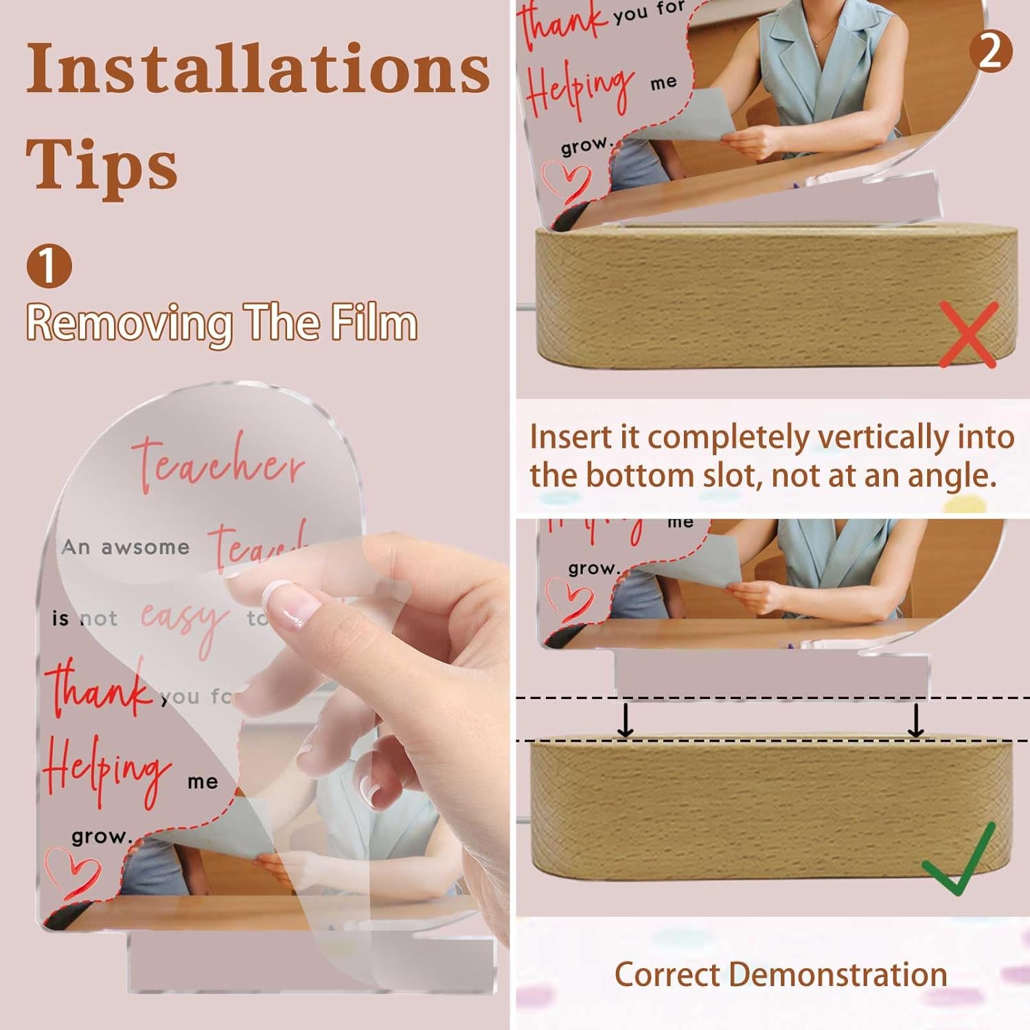 - 💖【Easy to Use】 Please remove the protective film before use. Then insert the acrylic plaque into the wooden base. The night light is USB charged with three different color temperatures, easy control on the cord to power on/off or switch to the lighting mode you prefer. Acrylic is easy to clean and maintain. Simply wipe it down with a soft cloth to remove dust or fingerprints.