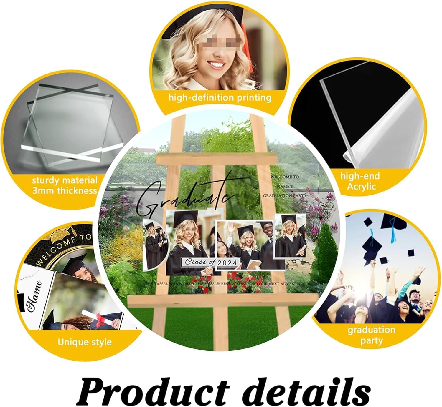 - 【Custom】This customized name and photo seamlessly blend with the overall design, creating a unique welcome for the graduation party sign. 【Material】This welcome sign is made of durable 3mm acrylic material and high-definition printing, which is sturdy, waterproof, weather resistant, and does not fade. It does NOT include brackets, but can be easily selected and paired with brackets or display brackets. 【Suitable size】Choose from three different sizes (12 x 18 in/15.9 x 24 in/24 x 35.9 in), allowing you to easily adapt to various scenarios to meet your specific needs and preferences.Each design is handled with precision and dedication. 【Wide Application】Our personalized welcome sign can be used indoors, outdoors, or in front of the house for graduation party celebrations, also a perfect way to show your support with a fun and elegant graduation sign. 【Service】Buy with confidence, we provide 30-day risk-free refund policy. Any problem or customized requirements please feel free to contact us. We will provide you with a solution within 24 hours.