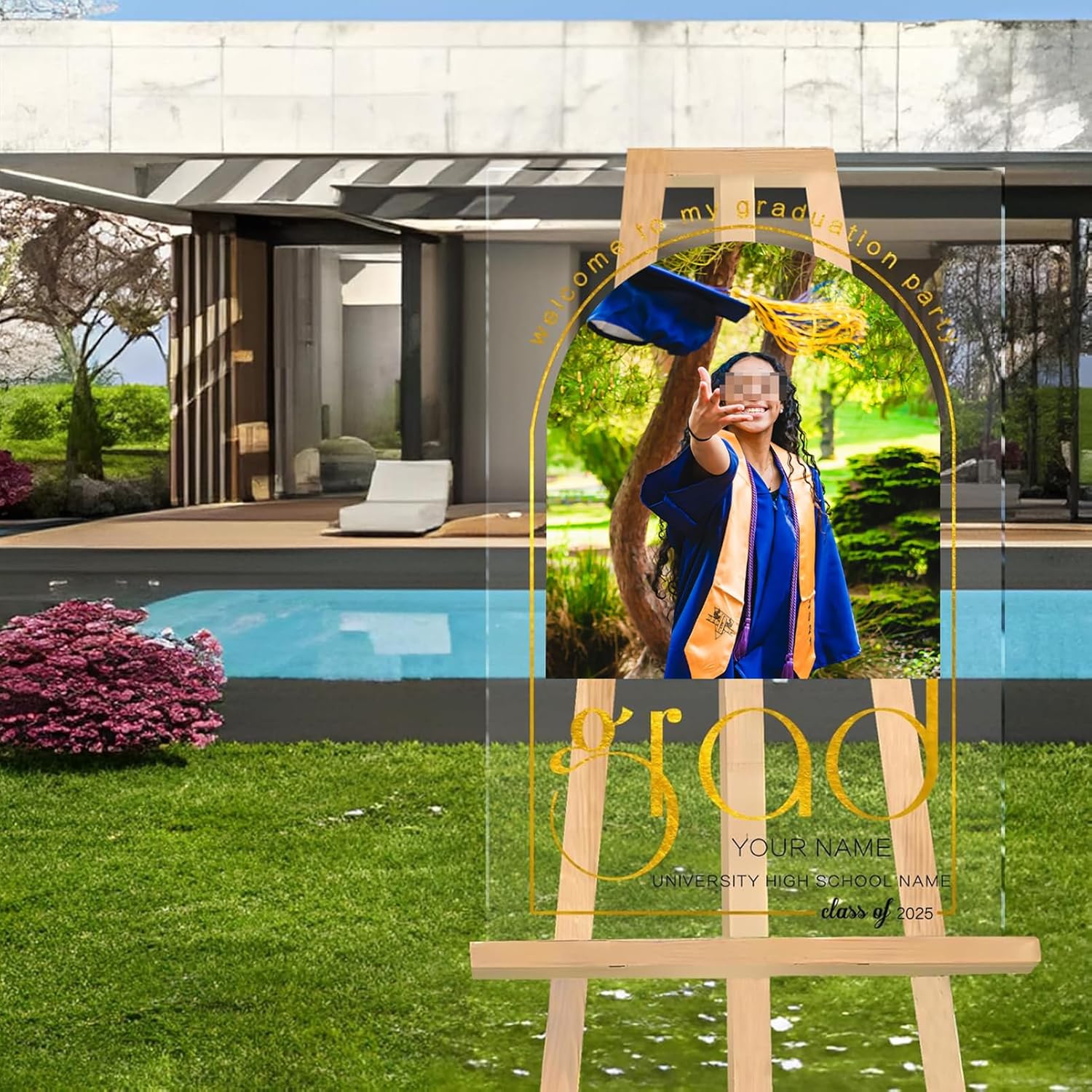 UUBAO Customized Welcome Sign for Graduation Party Personalized Acrylic Sign with Photo Name Class of 2025 Graduation Decor(Arch)