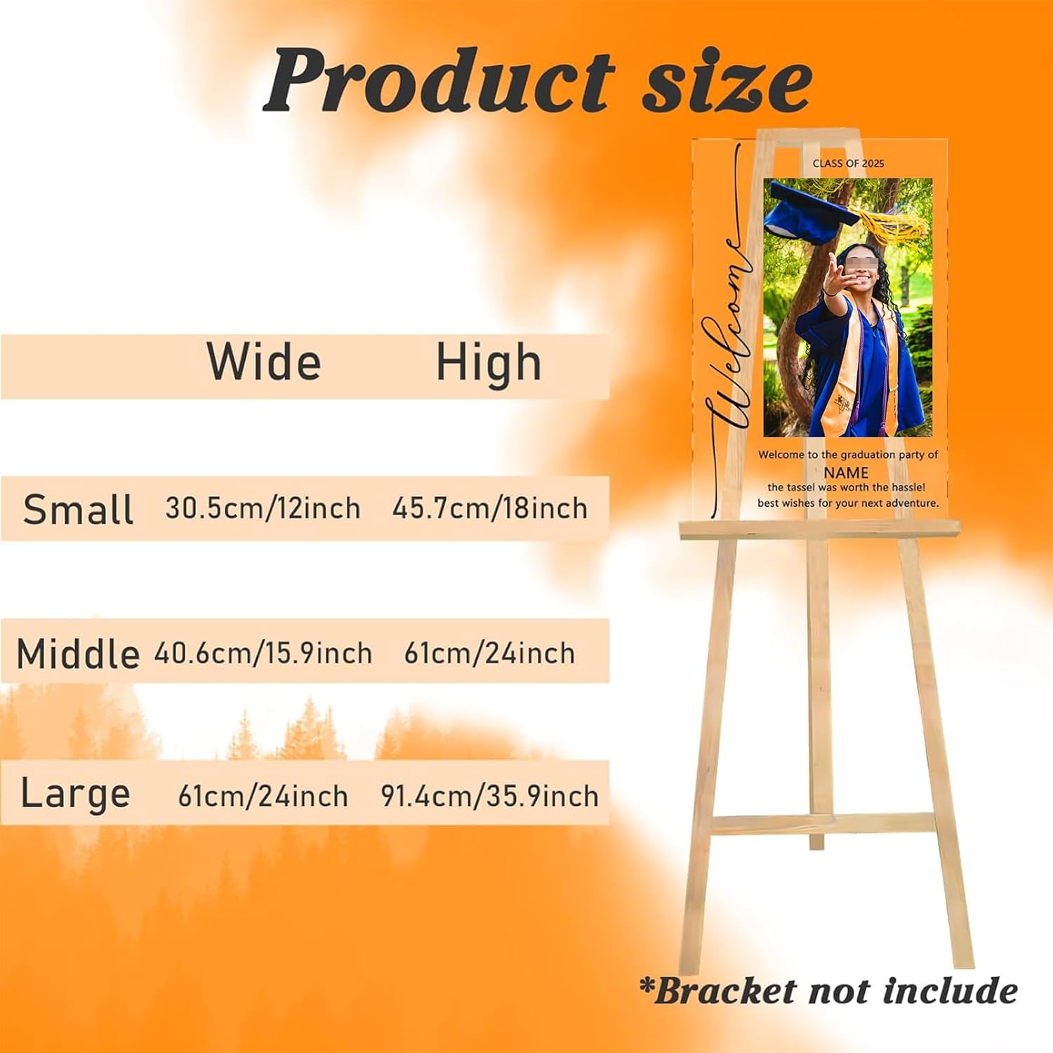 - 【Custom】This customized name and photo seamlessly blend with the overall design, creating a unique welcome for the graduation party sign. 【Material】This welcome sign is made of durable 3mm acrylic material and high-definition printing, which is sturdy, waterproof, weather resistant, and does not fade. It does NOT include brackets, but can be easily selected and paired with brackets or display brackets. 【Suitable size】Choose from three different sizes (12 x 18 in/15.9 x 24 in/24 x 35.9 in), allowing you to easily adapt to various scenarios to meet your specific needs and preferences.Each design is handled with precision and dedication. 【Wide Application】Our personalized welcome sign can be used indoors, outdoors, or in front of the house for graduation party celebrations, also a perfect way to show your support with a fun and elegant graduation sign. 【Service】Buy with confidence, we provide 30-day risk-free refund policy. Any problem or customized requirements please feel free to contact us. We will provide you with a solution within 24 hours.