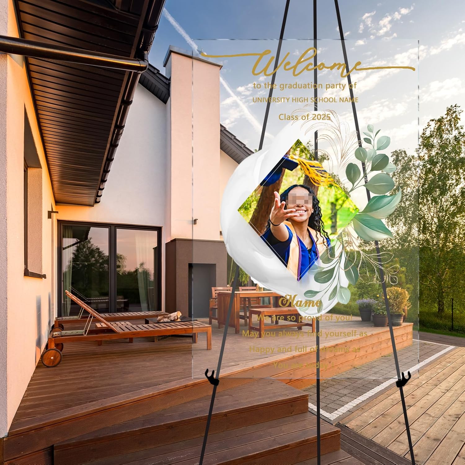 - 【Custom】This customized name and photo seamlessly blend with the overall design, creating a unique welcome for the graduation party sign. 【Material】This welcome sign is made of durable 3mm acrylic material and high-definition printing, which is sturdy, waterproof, weather resistant, and does not fade. It does NOT include brackets, but can be easily selected and paired with brackets or display brackets. 【Suitable size】Choose from three different sizes (12 x 18 in/15.9 x 24 in/24 x 35.9 in), allowing you to easily adapt to various scenarios to meet your specific needs and preferences.Each design is handled with precision and dedication. 【Wide Application】Our personalized welcome sign can be used indoors, outdoors, or in front of the house for graduation party celebrations, also a perfect way to show your support with a fun and elegant graduation sign. 【Service】Buy with confidence, we provide 30-day risk-free refund policy. Any problem or customized requirements please feel free to contact us. We will provide you with a solution within 24 hours.