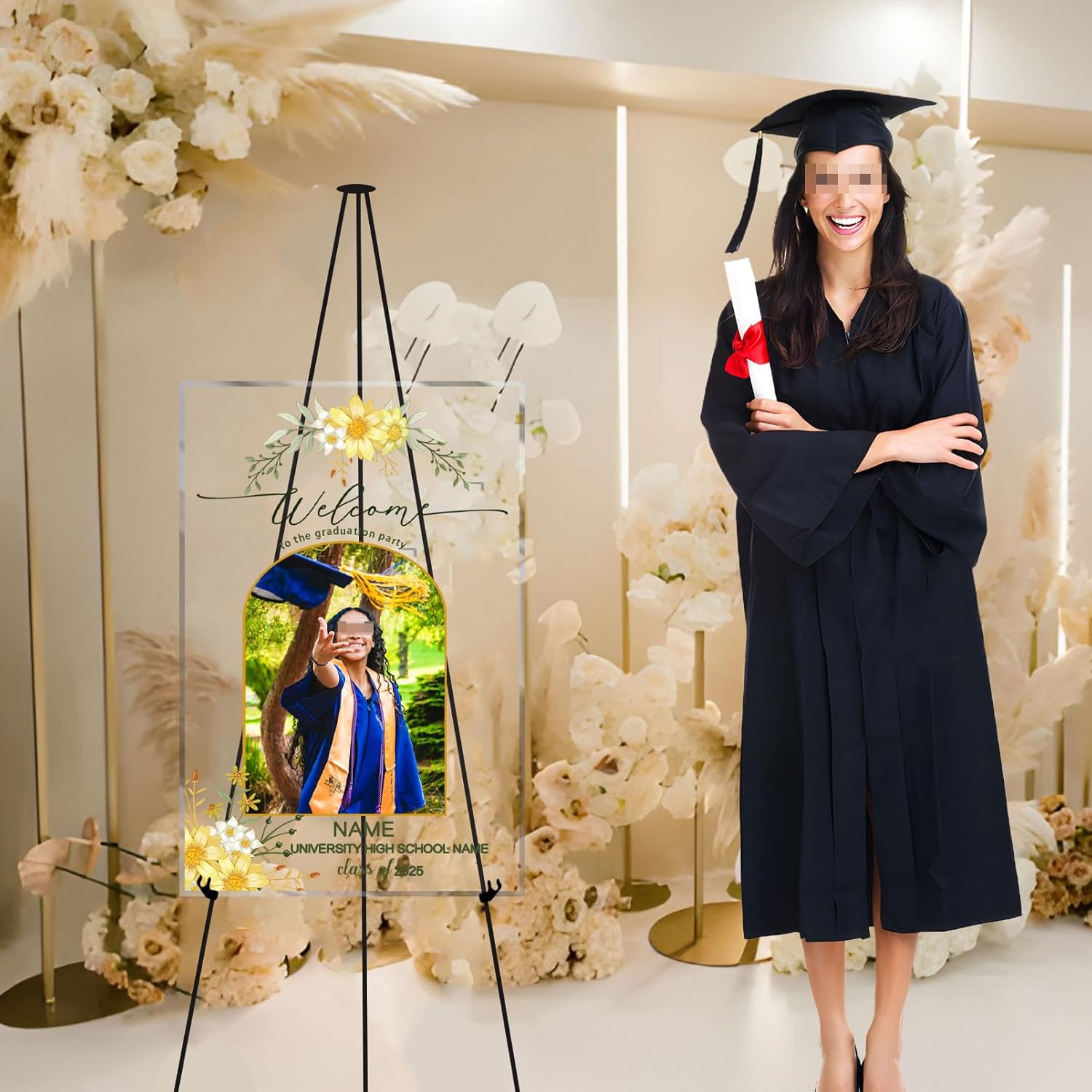 - 【Custom】This customized name and photo seamlessly blend with the overall design, creating a unique welcome for the graduation party sign. 【Material】This welcome sign is made of durable 3mm acrylic material and high-definition printing, which is sturdy, waterproof, weather resistant, and does not fade. It does NOT include brackets, but can be easily selected and paired with brackets or display brackets. 【Suitable size】Choose from three different sizes (12 x 18 in/15.9 x 24 in/24 x 35.9 in), allowing you to easily adapt to various scenarios to meet your specific needs and preferences.Each design is handled with precision and dedication. 【Wide Application】Our personalized welcome sign can be used indoors, outdoors, or in front of the house for graduation party celebrations, also a perfect way to show your support with a fun and elegant graduation sign. 【Service】Buy with confidence, we provide 30-day risk-free refund policy. Any problem or customized requirements please feel free to contact us. We will provide you with a solution within 24 hours.