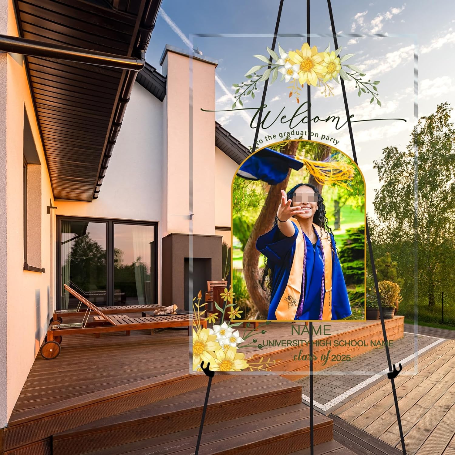 UUBAO Customized Welcome Sign for Graduation Party Personalized Acrylic Sign with Photo Name Class of 2025 Graduation Decor(Yellow Flower)