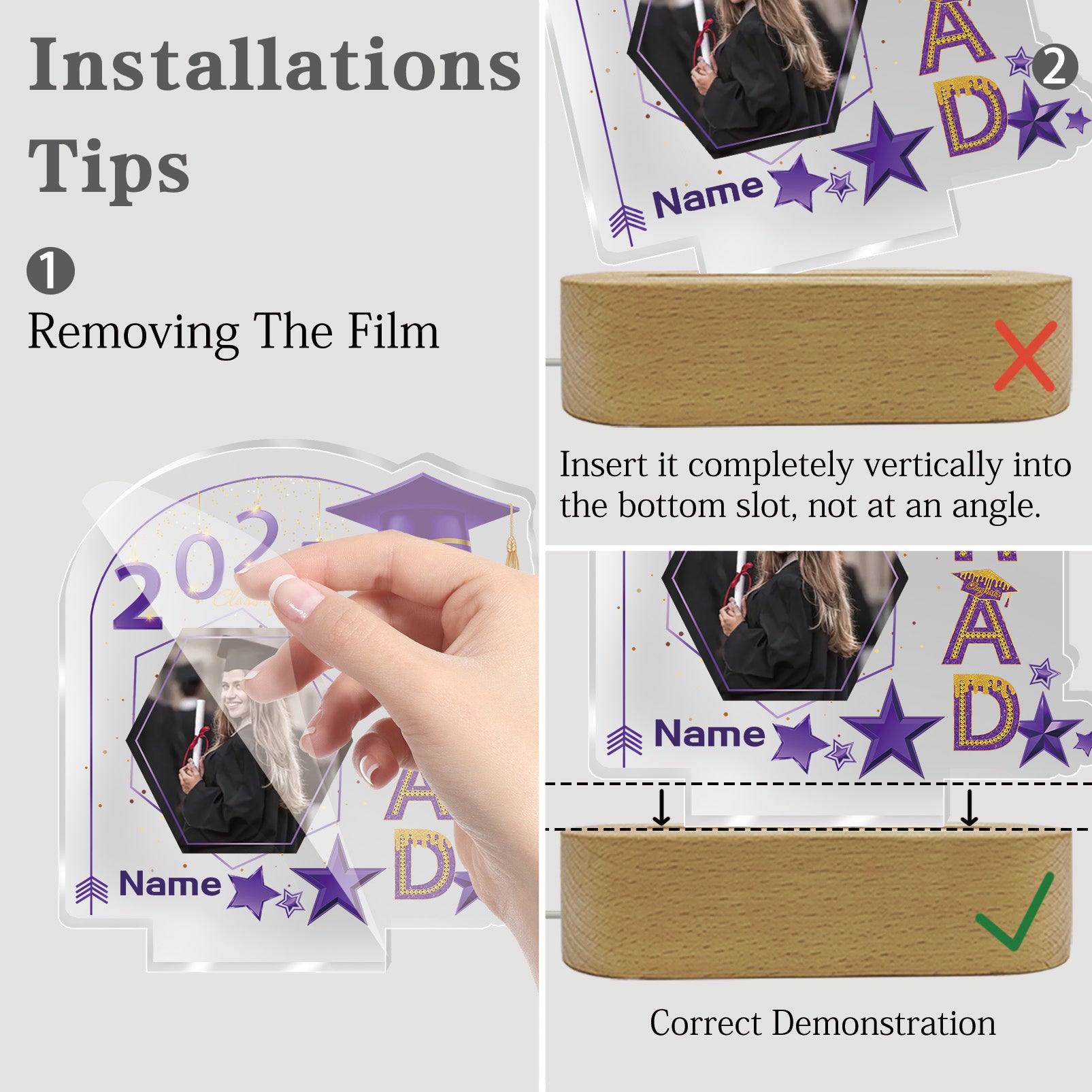 - 【Custom】Our night lights support customization, and you can customize photos, names,according to your own needs. Customize this unique graduation gift for the person you love, imagine their happy faces when they see this special graduation gift!