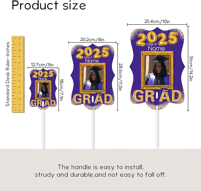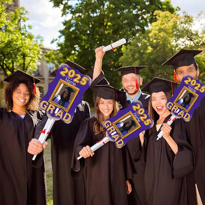 - 【Customize】Special double-sided design, elegant and unique. Our graduation fan can be customized with names and photos. When uploading photos, please use high-resolution original photos (instead of screenshots).【Size and Material】Three sizes to choose from: 5x7.1in/8x11.3in/10x14.2in. The graduation fan is made of Thickened PVC. High definition printing, waterproof, non fading, and can be stored for a long time.【Easy to Use】The sturdy handle design of our product ensures easy handling, making it a reliable and long-lasting accessory for events and gatherings. Perfect for outside or indoor use.【Fun Graduation Supplies】Perfect party favors, creative photo booth props, and add a personalized touch to your celebrations. Make your celebrations unforgettable.【Service】Buy with confidence,we provide 30 day risk-free refund policy. Any problem please feel free to contact us. We will provide you with a solution within 24 hours.