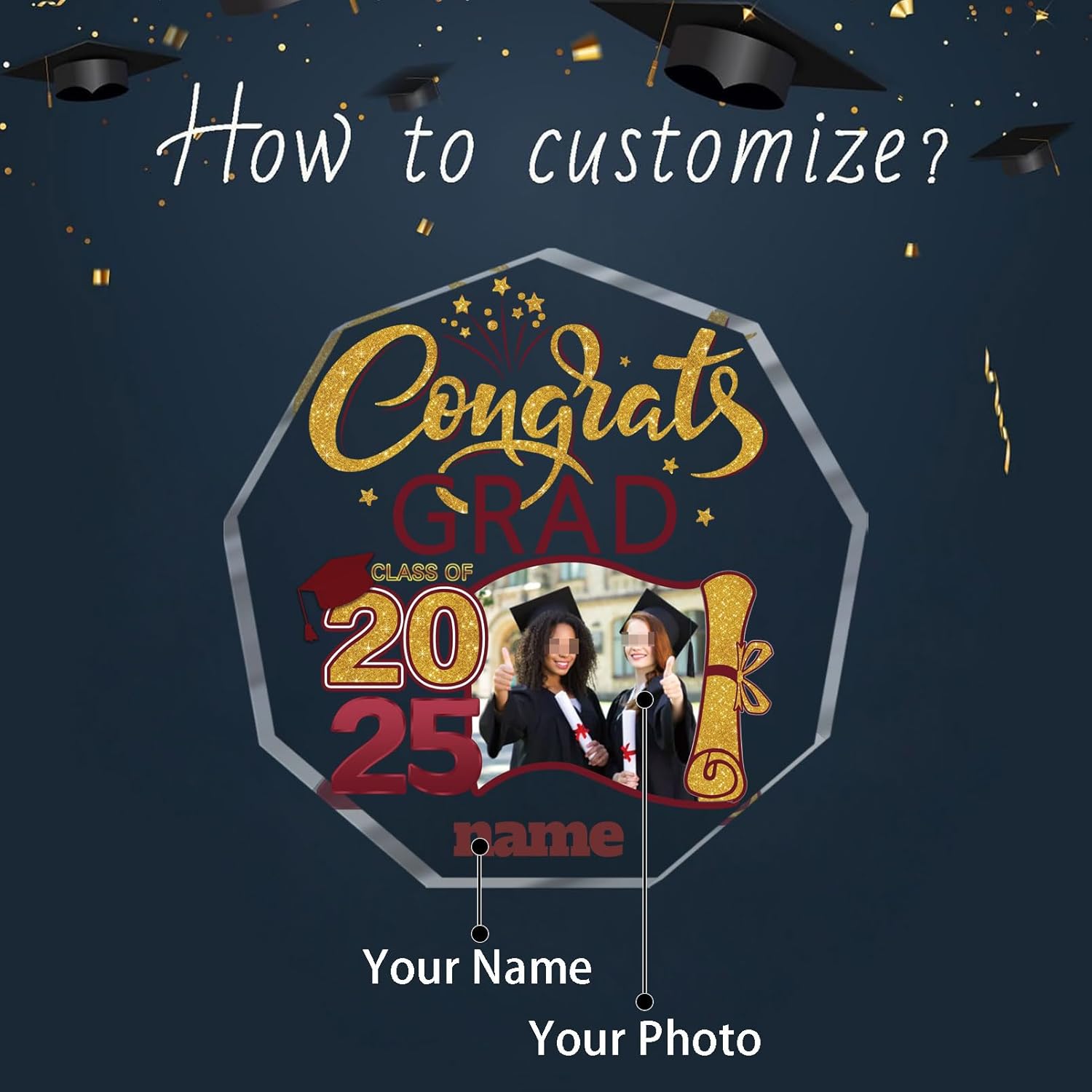 - 【Customize】Celebrate your graduation with our Custom 2025 Graduation Crystal Plaque, featuring customizable size, Single Picture and name for a truly personal touch.Just click "customize now" on top right.