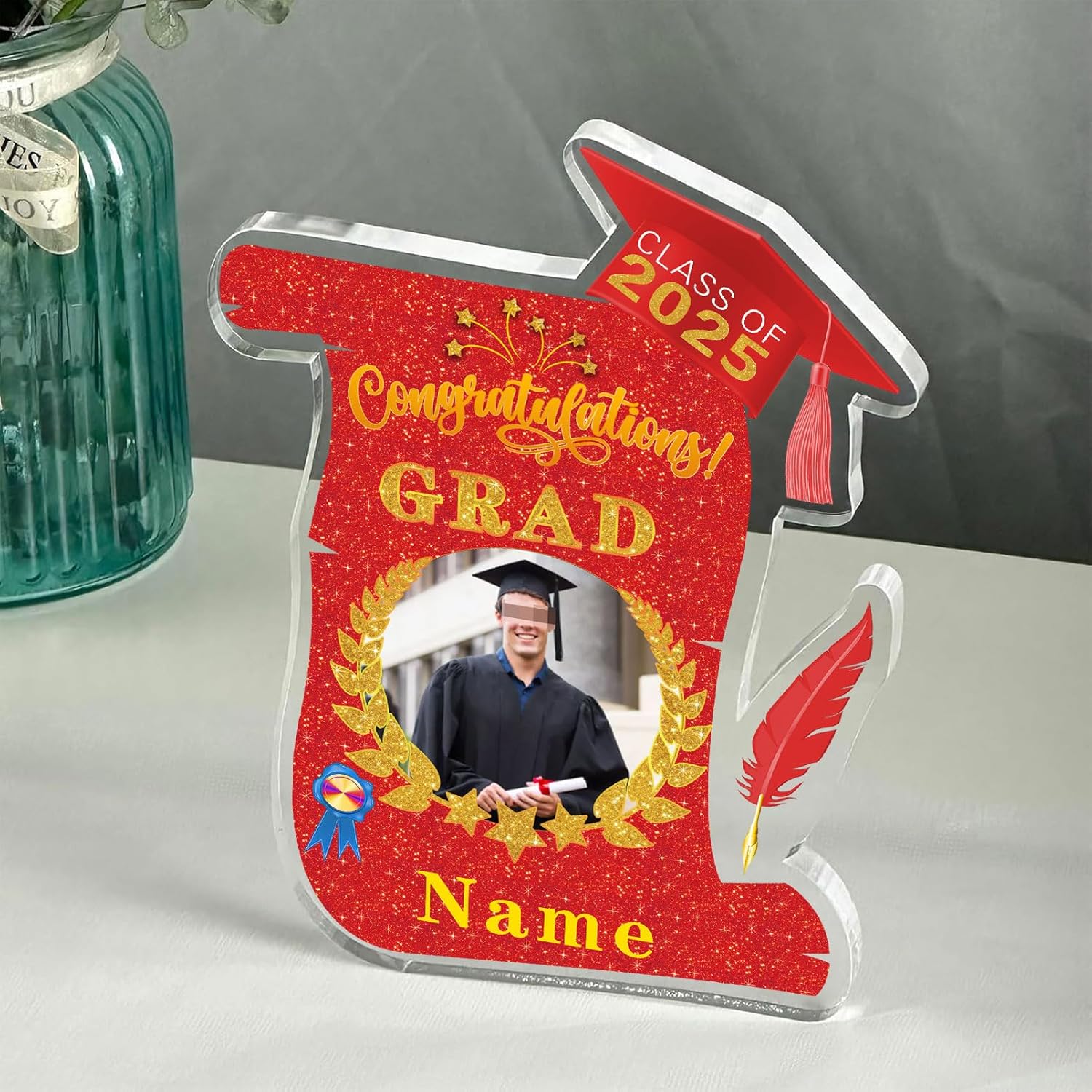 UUBAO Personalized Graduation Gift Class of 2025 Desk Paperweight Farewell Memorial Decorative Signs Plaques with Photo (Red)