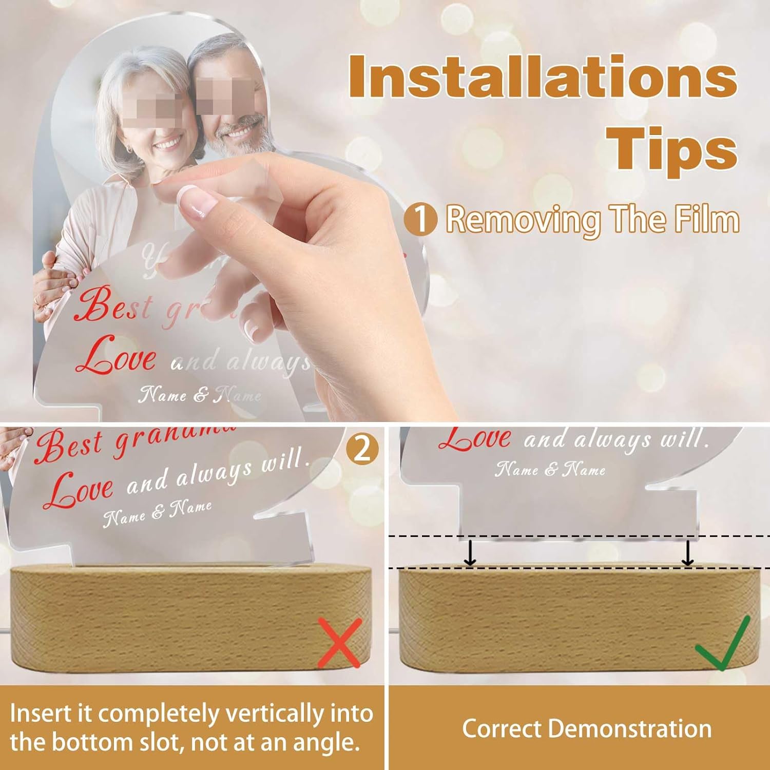- 🎉【Custom】Our customized night lights are the perfect gift for your girlfriend, boyfriend, partner, family, or friends. Personalize them with your favorite photos and your name to make them truly unique to you. On the special day of your loved one, customize a unique acrylic night light plaque to express your love.