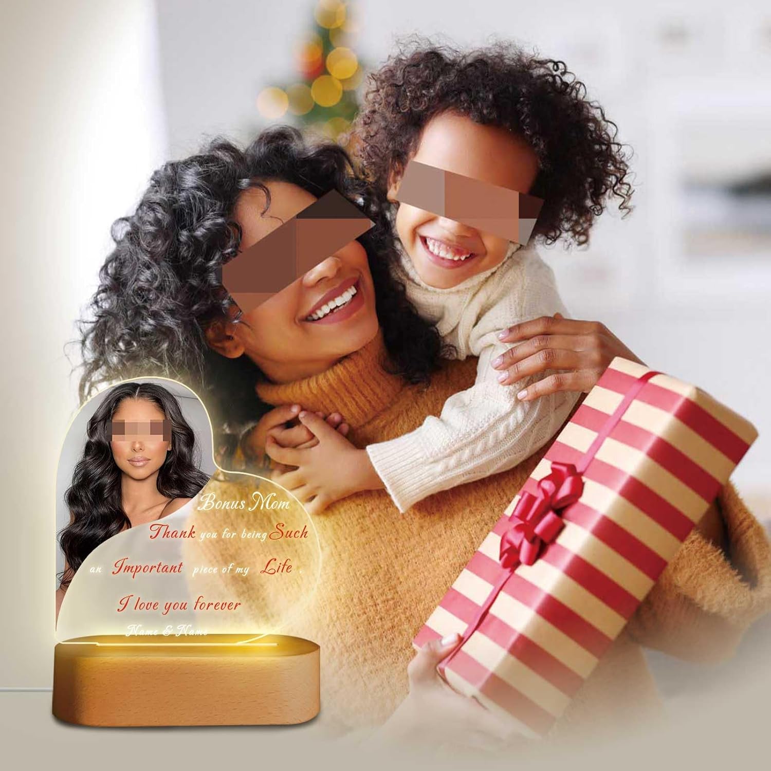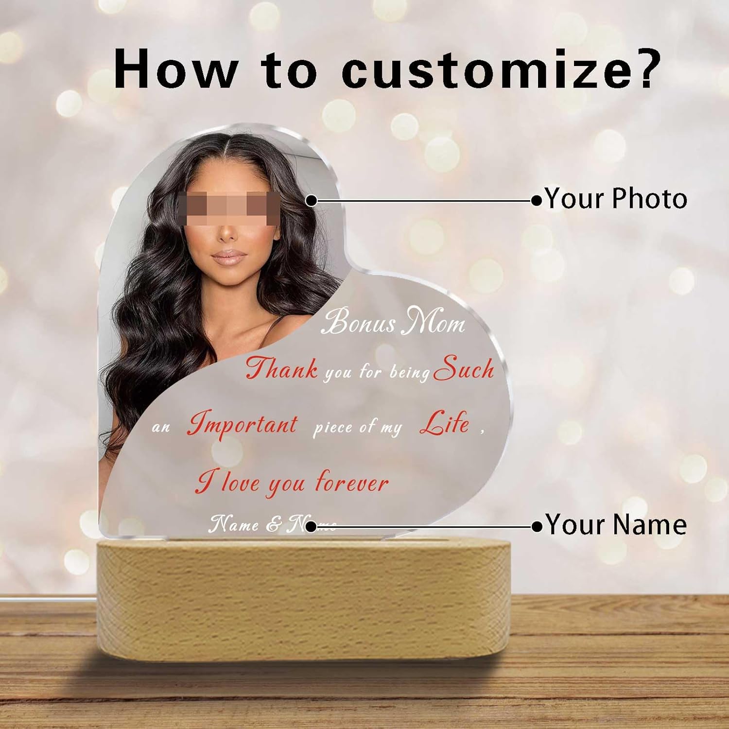 UUBAO Personalized Mother's Day Night Light Gift with Wooden Base Custom Photo Acrylic Plaque LED Night Lamp Gift for Bonus Mom