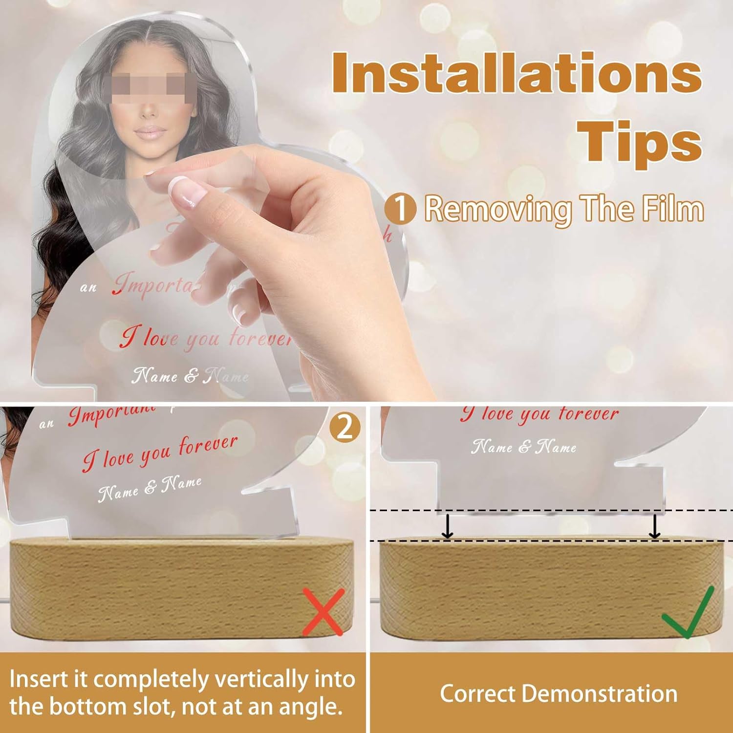 - 🎉【Custom】Our customized night lights are the perfect gift for your girlfriend, boyfriend, partner, family, or friends. Personalize them with your favorite photos and your name to make them truly unique to you. On the special day of your loved one, customize a unique acrylic night light plaque to express your love.