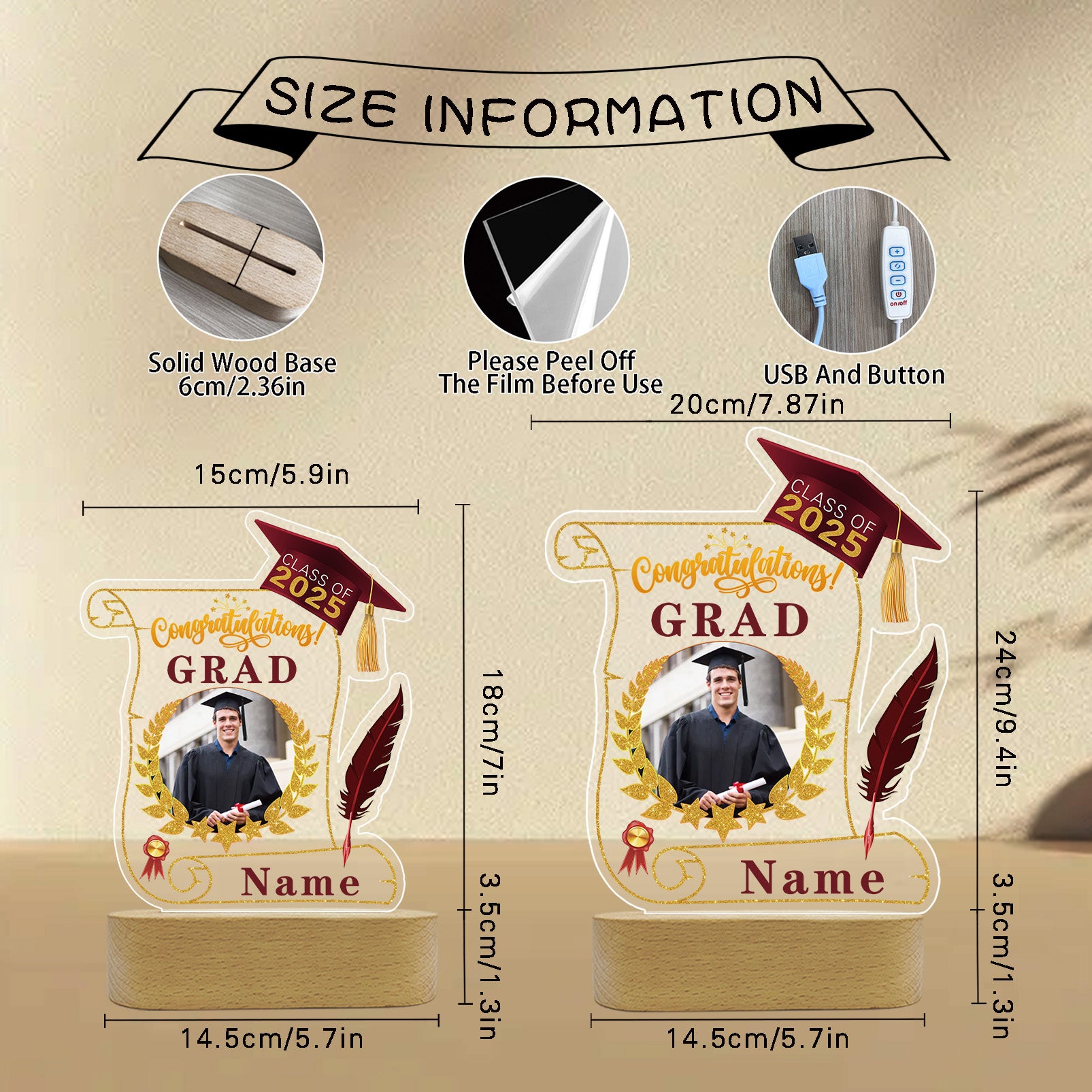 - 【Custom】Our night lights support customization, and you can customize photos, names,according to your own needs. Customize this unique graduation gift for the person you love, imagine their happy faces when they see this special graduation gift!