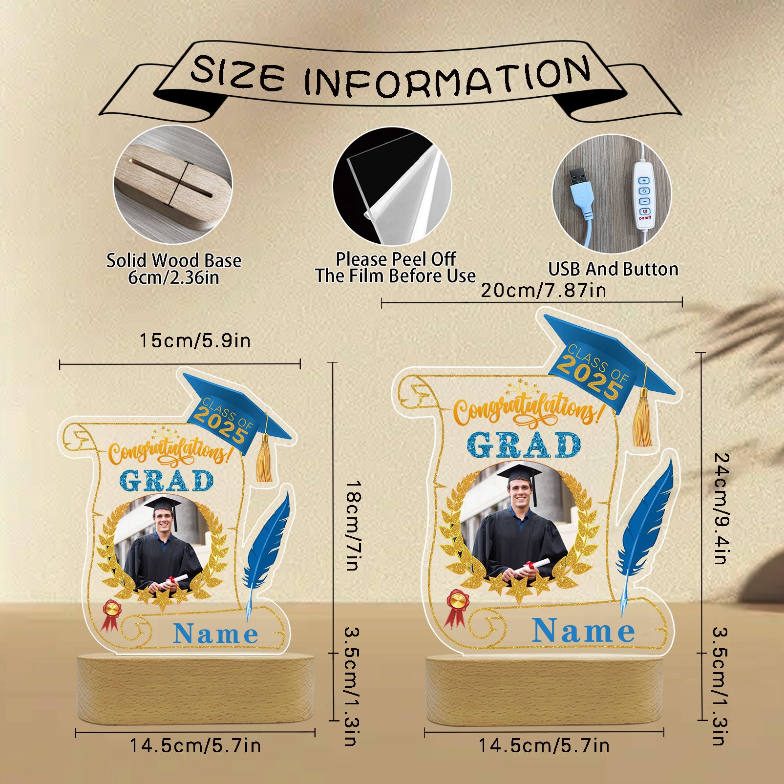 - 【Custom】Our night lights support customization, and you can customize photos, names,according to your own needs. Customize this unique graduation gift for the person you love, imagine their happy faces when they see this special graduation gift!