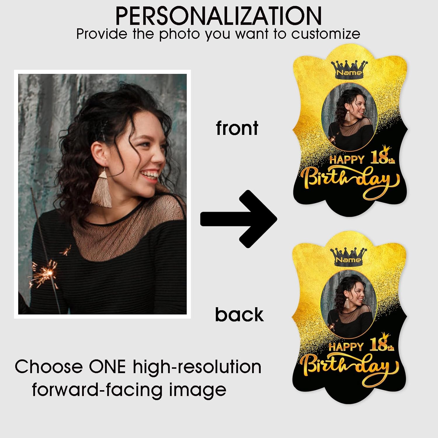 UUBAO Custom Happy Birthday Face Cutout Fans Personalized Photo Prop Signs for Birthday Party(Black and Gold)