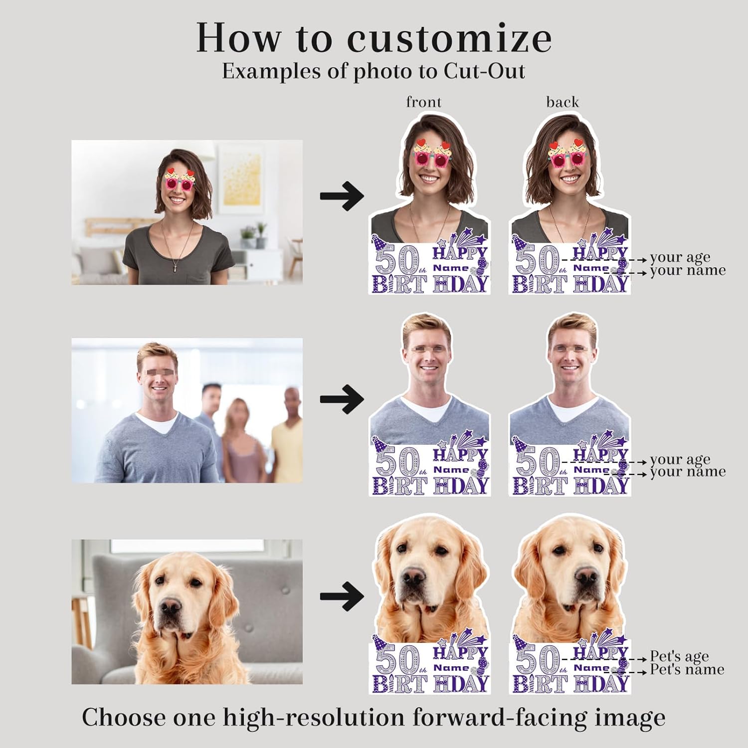 UUBAO Custom Happy Birthday Face Cutout Fans Personalized Photo Prop Signs for Birthday Party(Purple and Silver)
