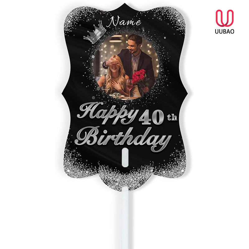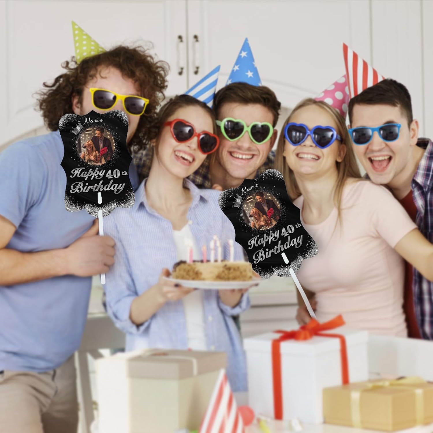 UUBAO Personalized Double Sided Happy Birthday Photo Prop Face Fan Customized Birthday Fun Supplies(Black and Silver)