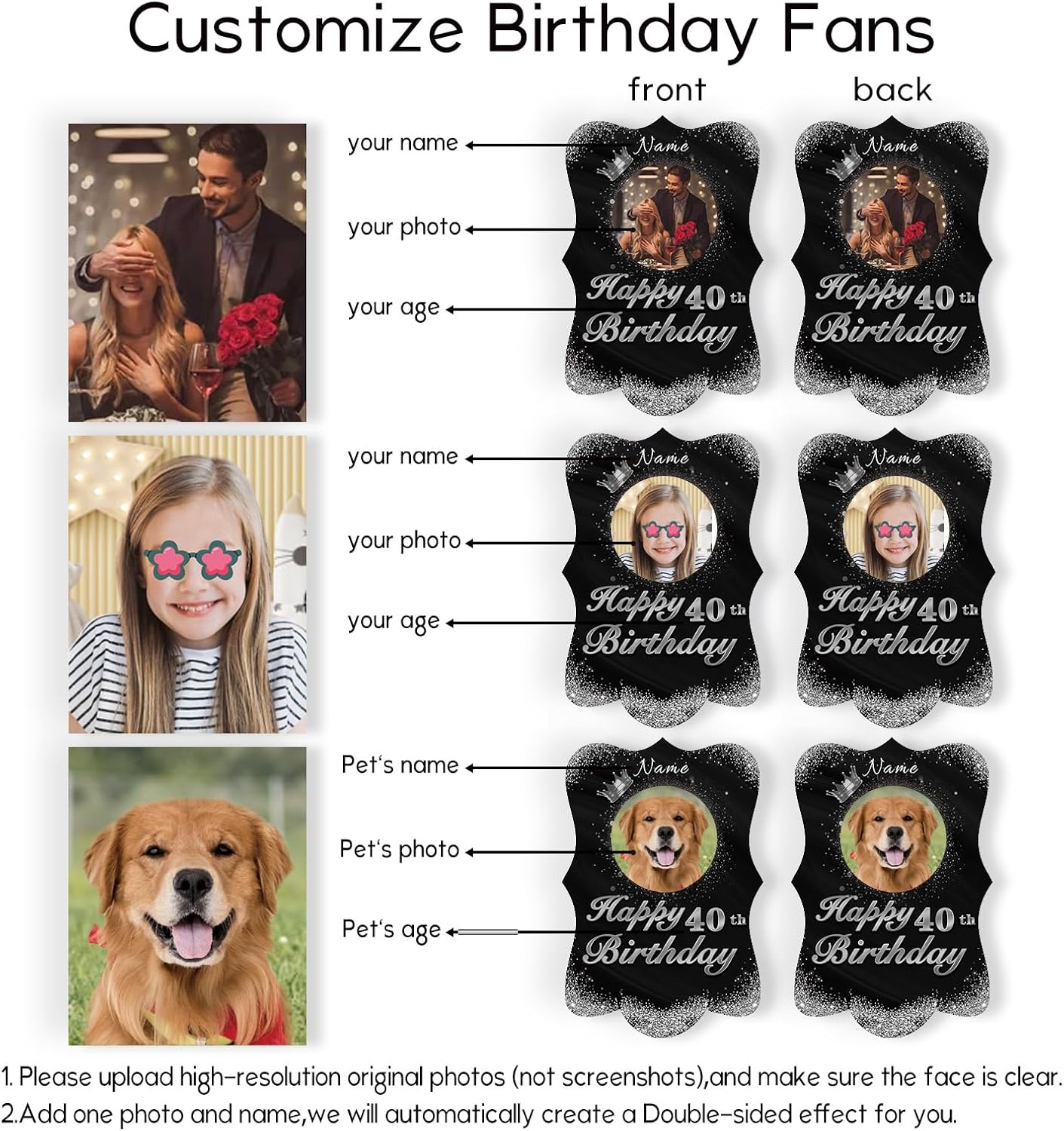- 🎁【Customizable】Our birthday face fan supports photo and name customization, and the content you customize can be displayed on both sides! Quickly upload photos of the one you love and give them an exclusive surprise!